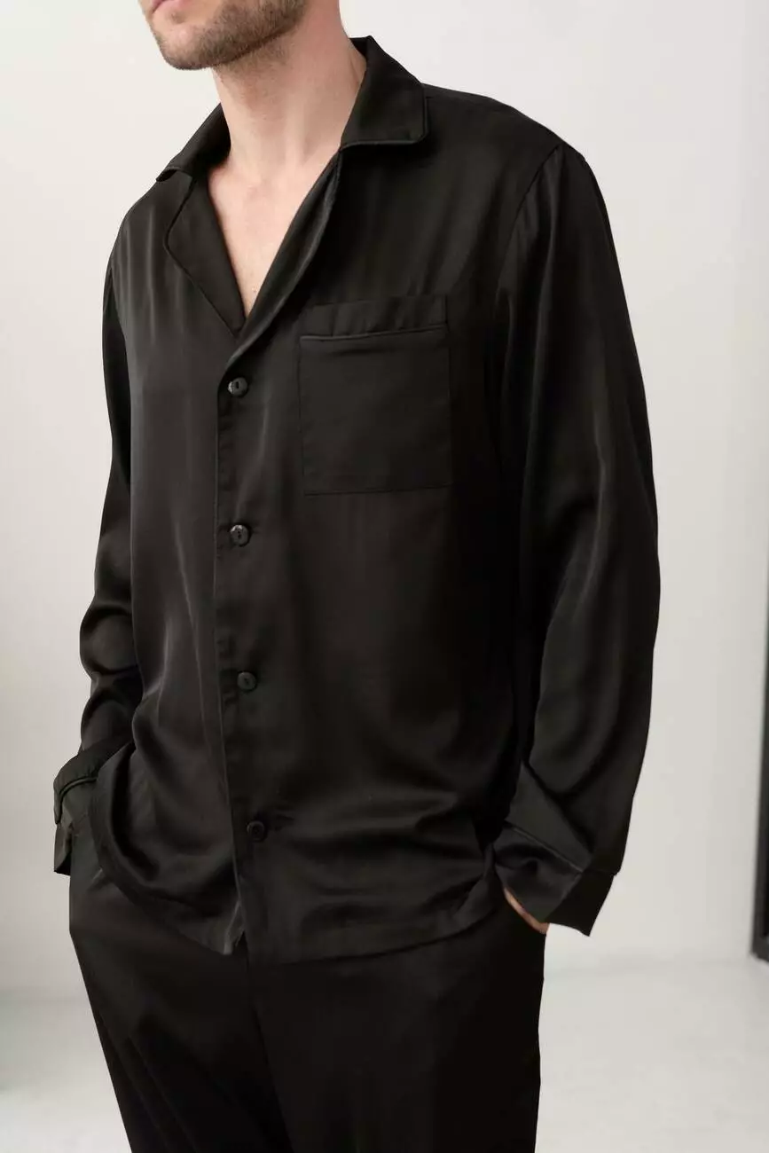 Чоловіча піжама Volcano COSY з шовку (штани+сорочка) чорна з чорним кантом