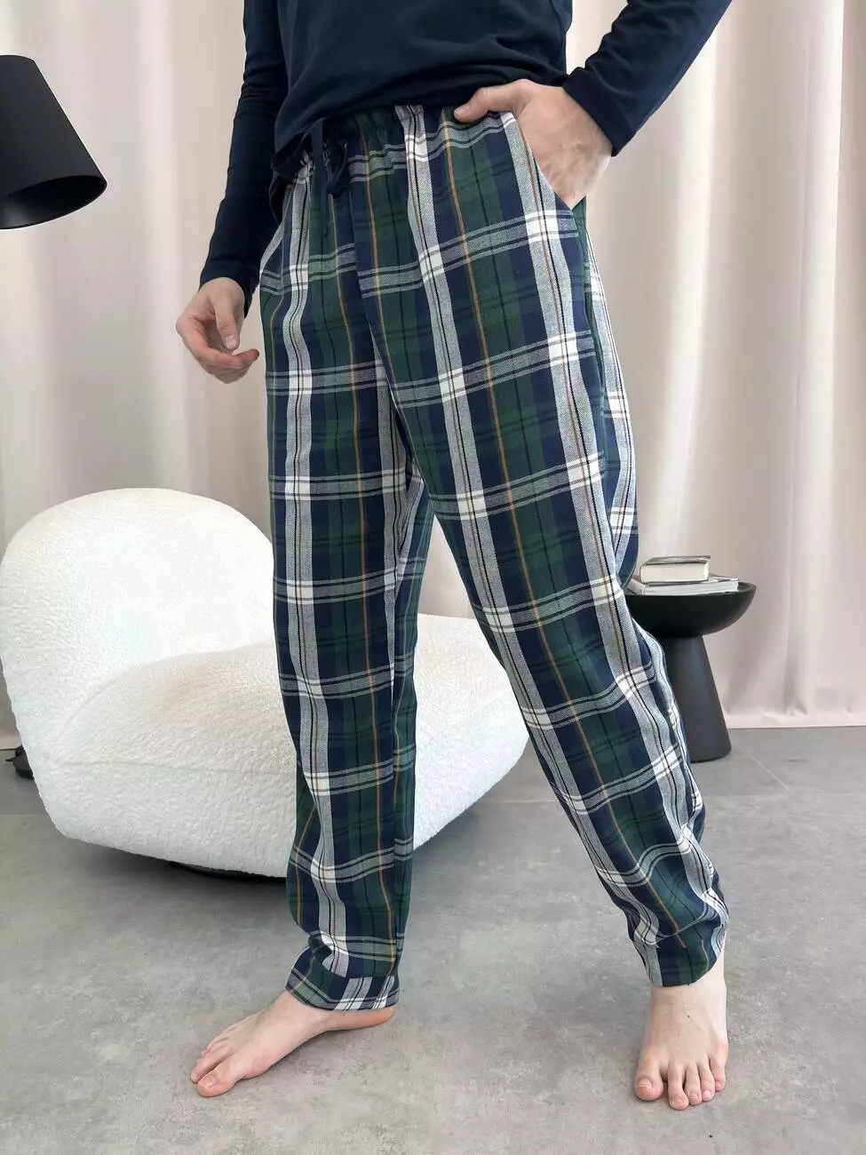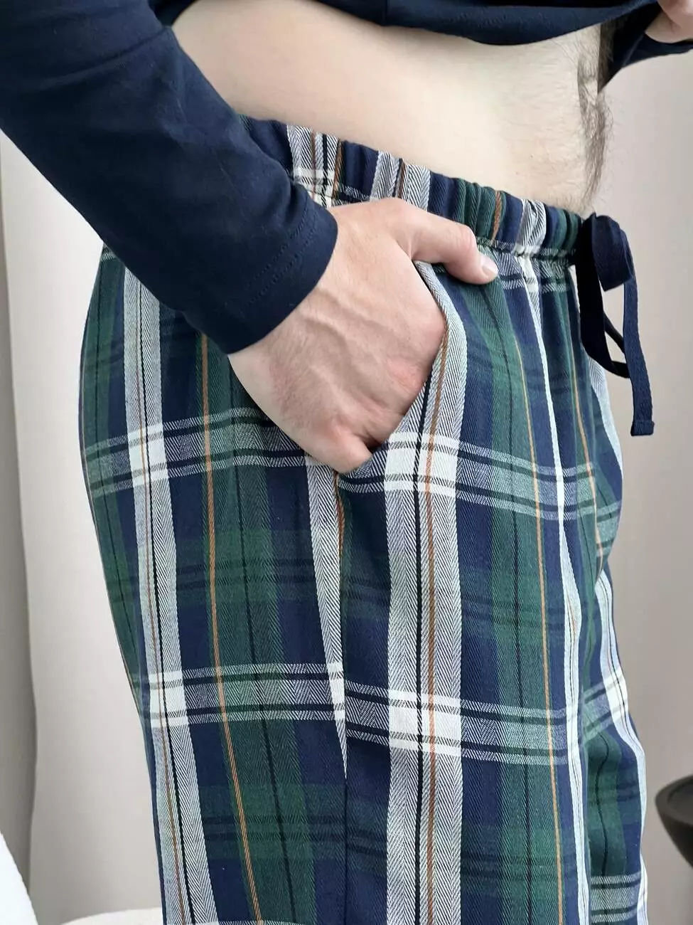 Чоловічі штани піжамні COSY домашні із фланелі в клітину синьо-зелені