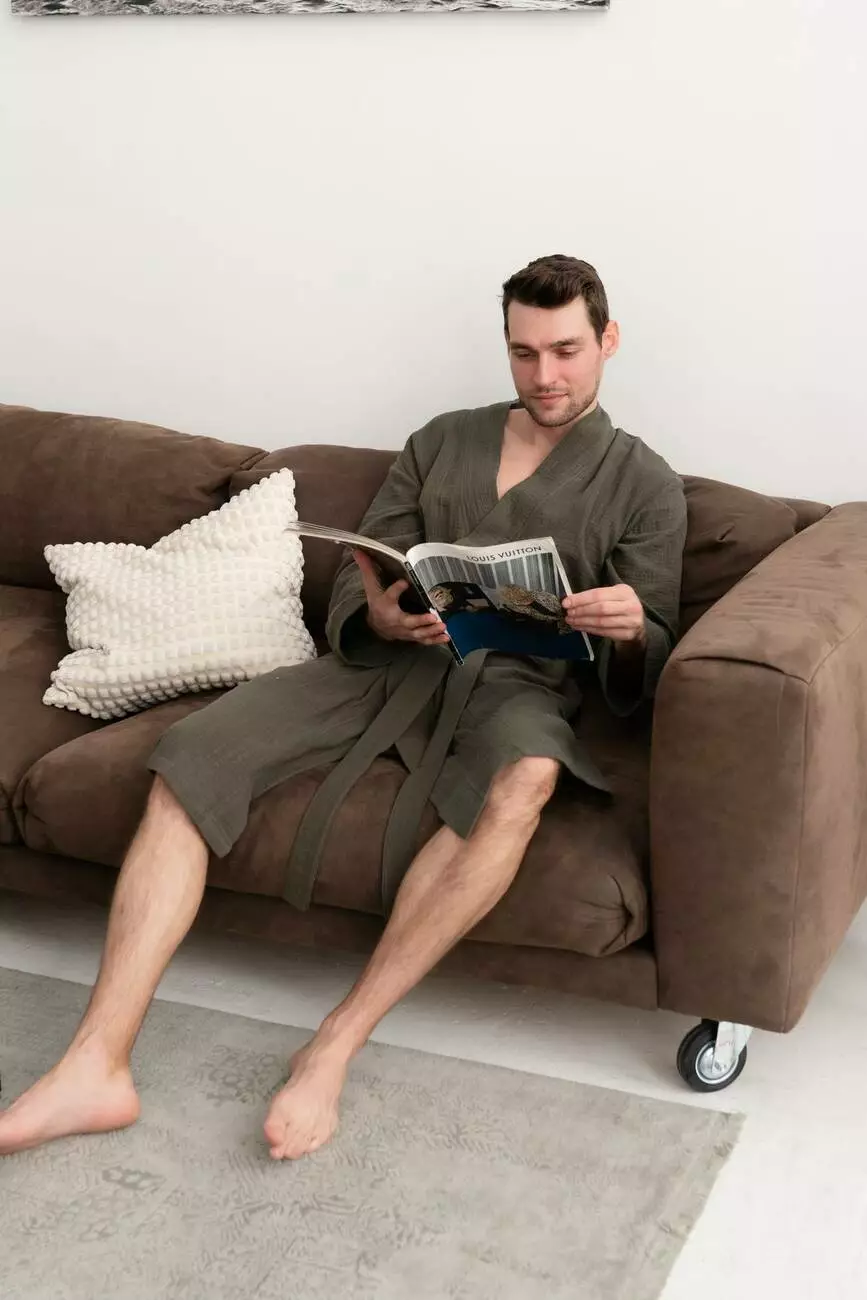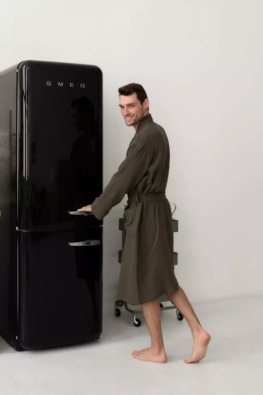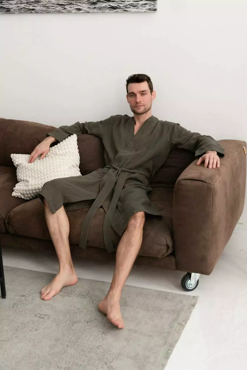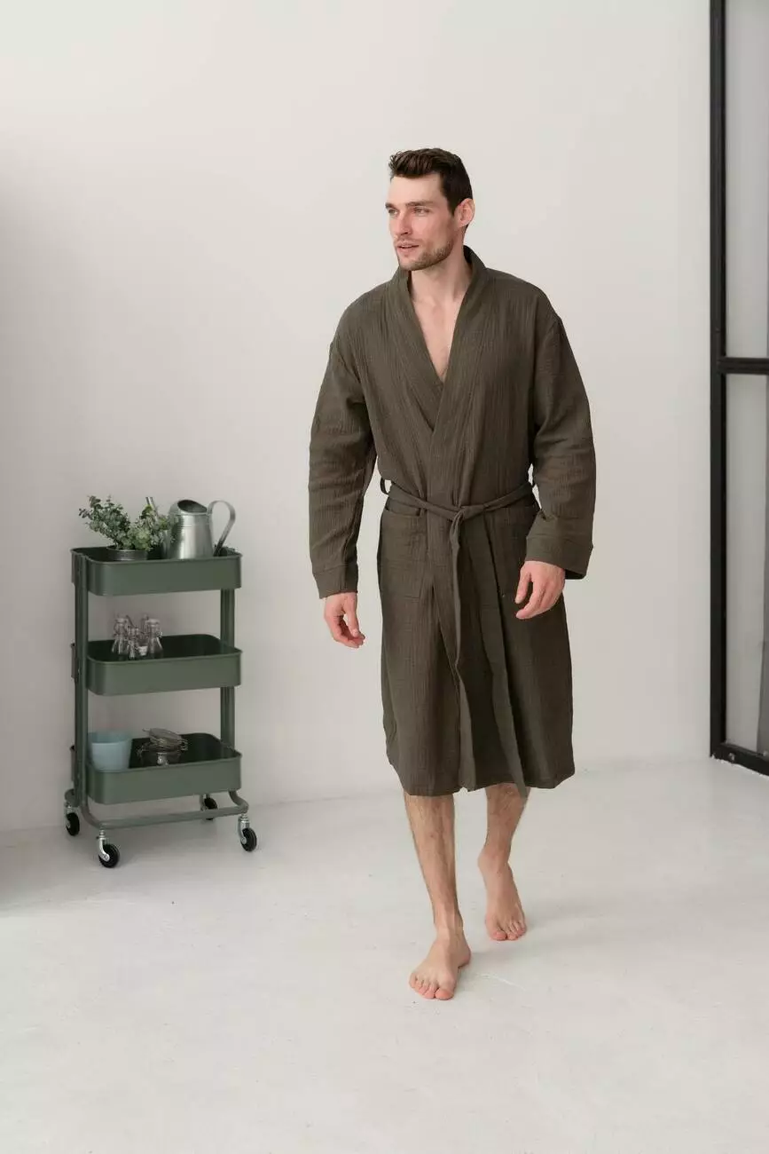 Чоловічий халат COSY Duna із фактурного мусліну хакі