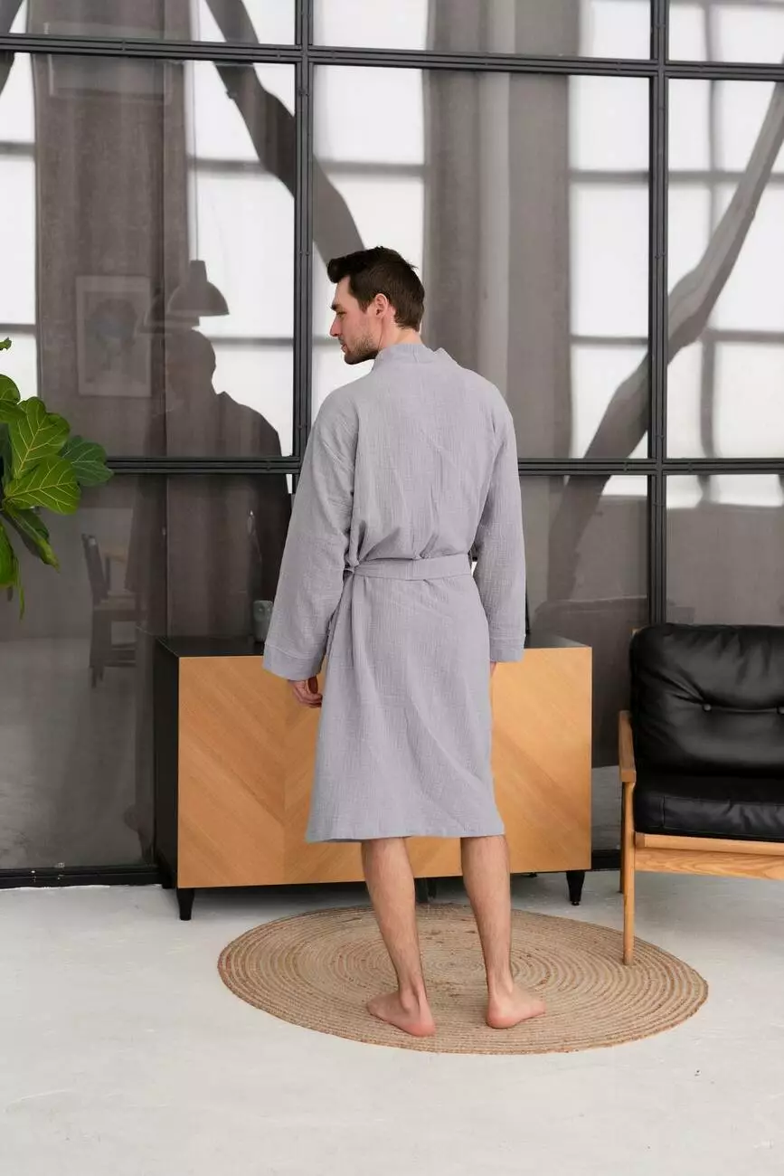 Чоловічий халат COSY Duna із фактурного мусліну сірий