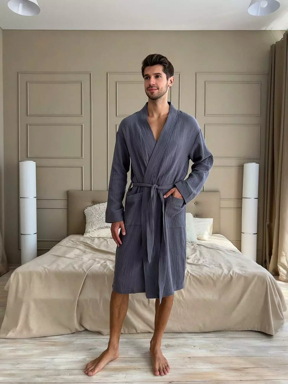Чоловічий халат із мусліну забезпечить комфорт та затишок вдома.