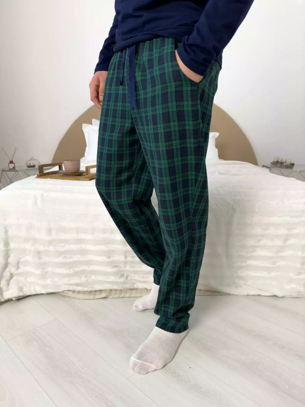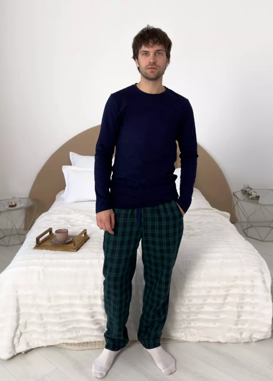 - Штани: синьо-зелені з фланелі – теплі, м’які та приємні до тіла. Класичний крій забезпечує комфорт у будь-який час.