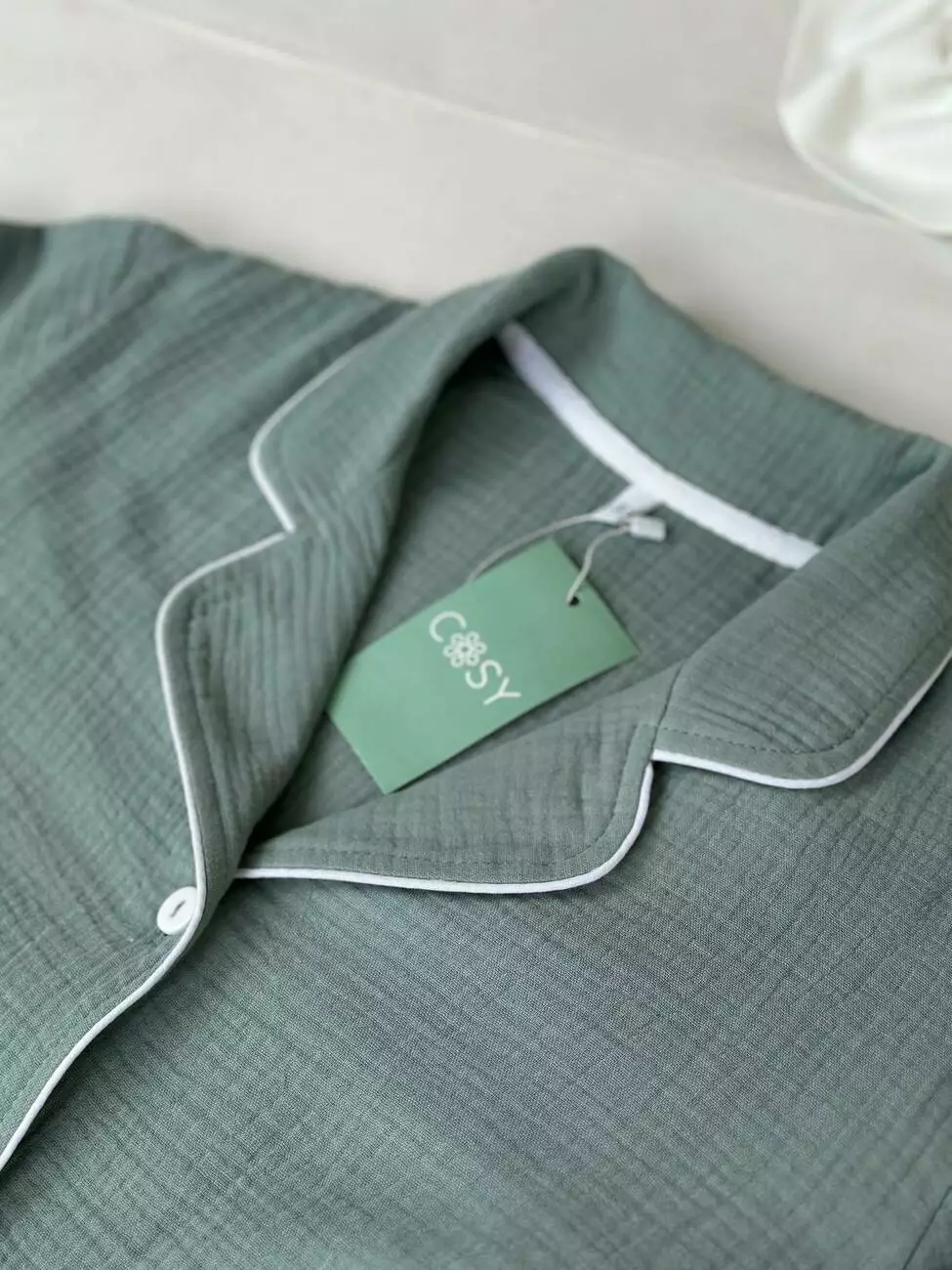 Дитяча муслінова піжама шорти+сорочка довгий рукав VIVA, евкаліпт