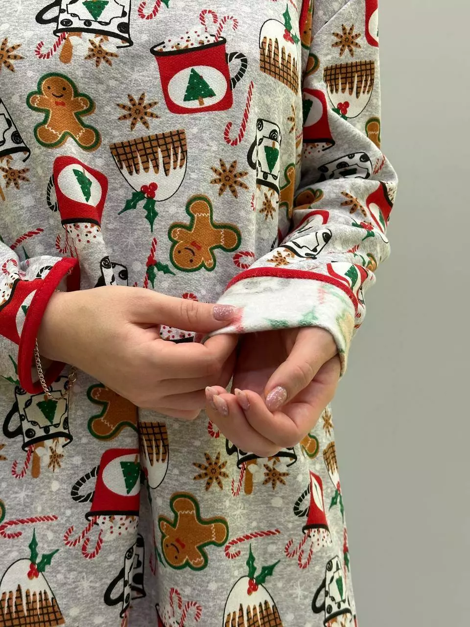 Домашнє жіноче плаття сорочка COSY з начосом Різдво сіра