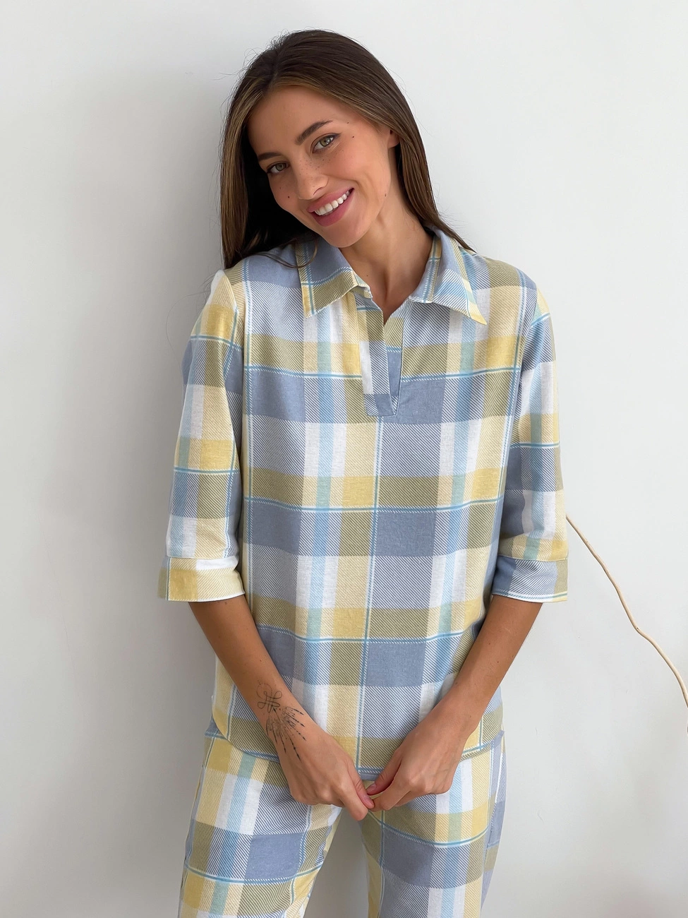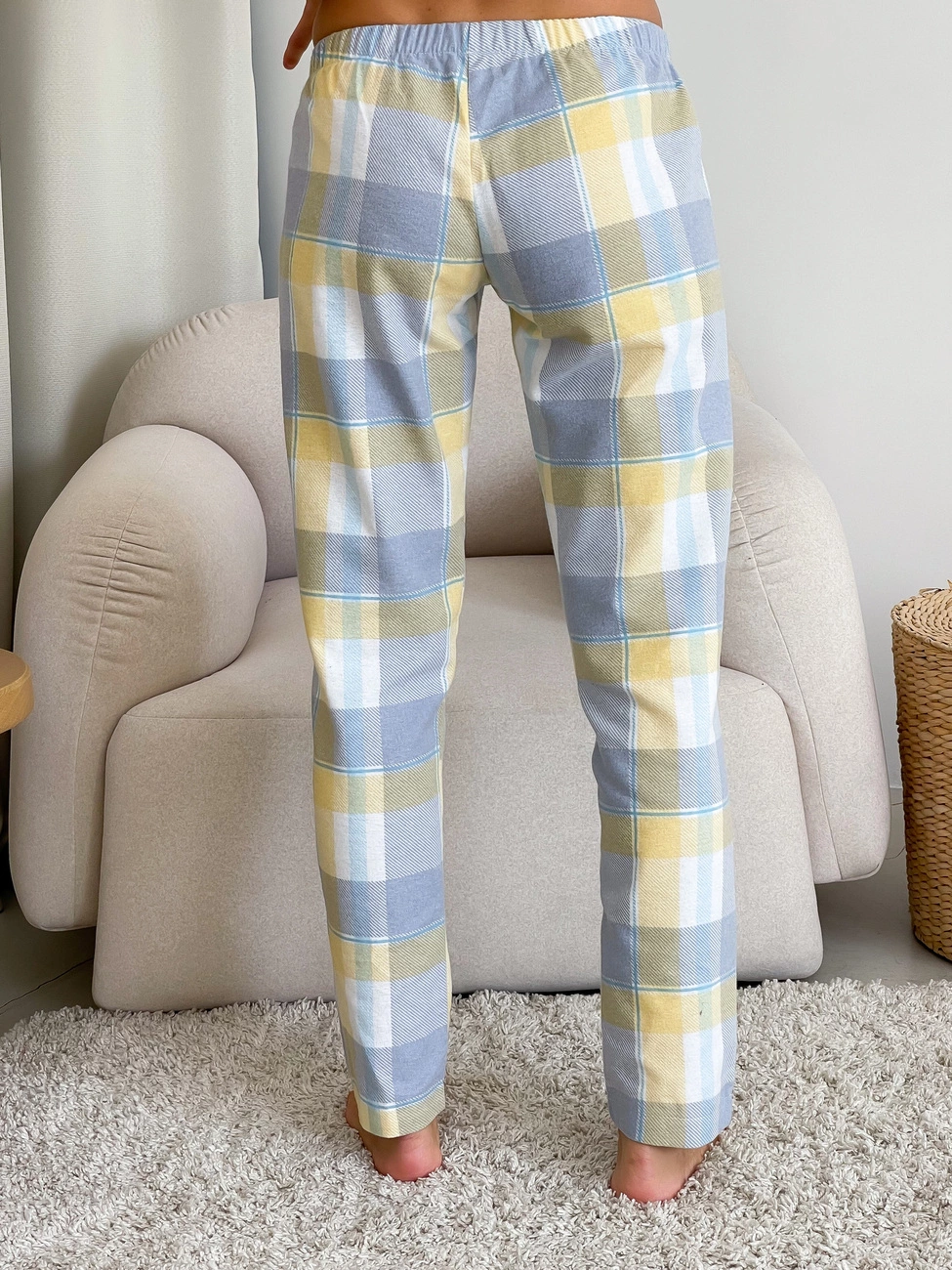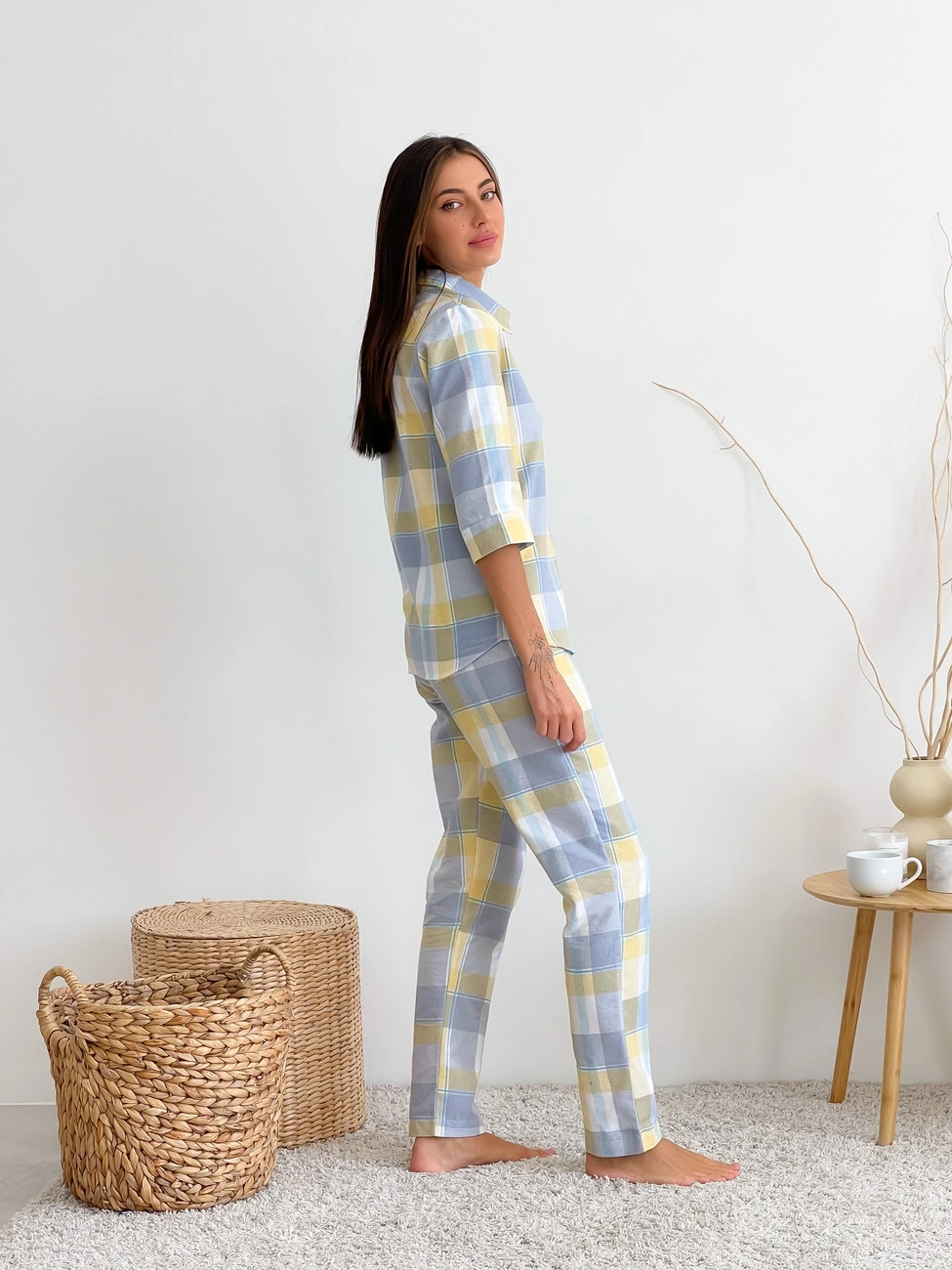 Домашній Жіночий комплект COSY у клітинку (сорочка + штани) жовто/сірий