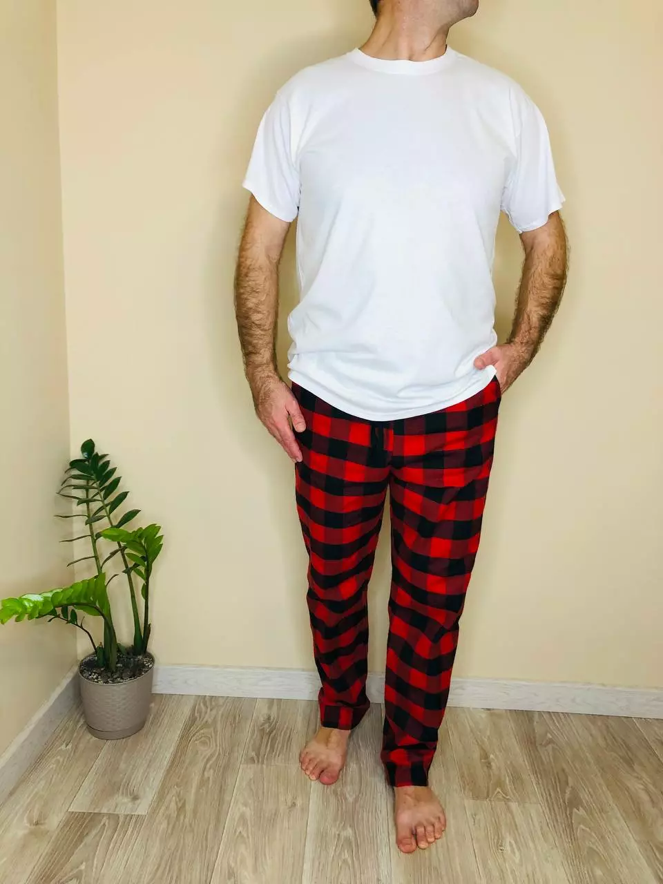Затишні фланелеві штани з кишенями. Пояс на резинці з регульованою куліскою. Штани: Колір: клітина червоно/чорна. Тканина фланель: бавовна 70%, поліестер 30%, Туреччина Щільність: 160 г/м2 Ефект: легке начісування, одностороннє (всередину) Чоловіча футболка- 100% бавовна Колір: біла (f01) Размер: L; XL; M; 2XL