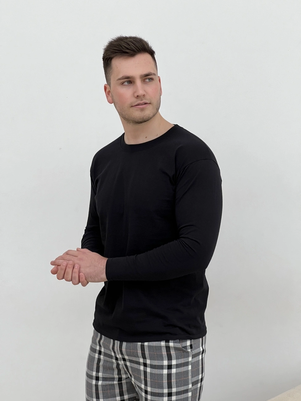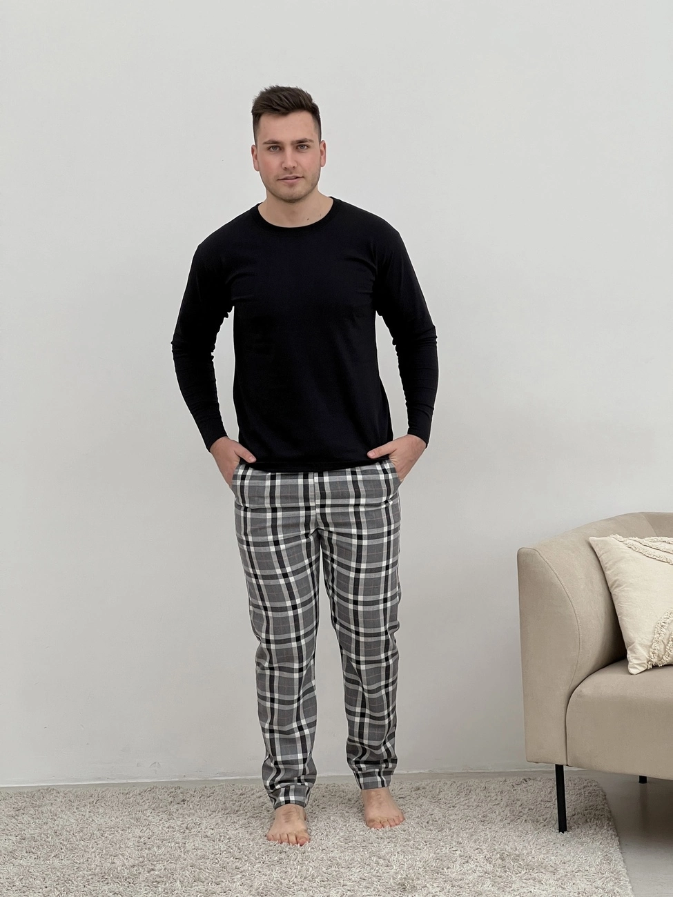 Домашня піжама для чоловіків COSY із фланелі (штани+лонгслив) клітина сіра