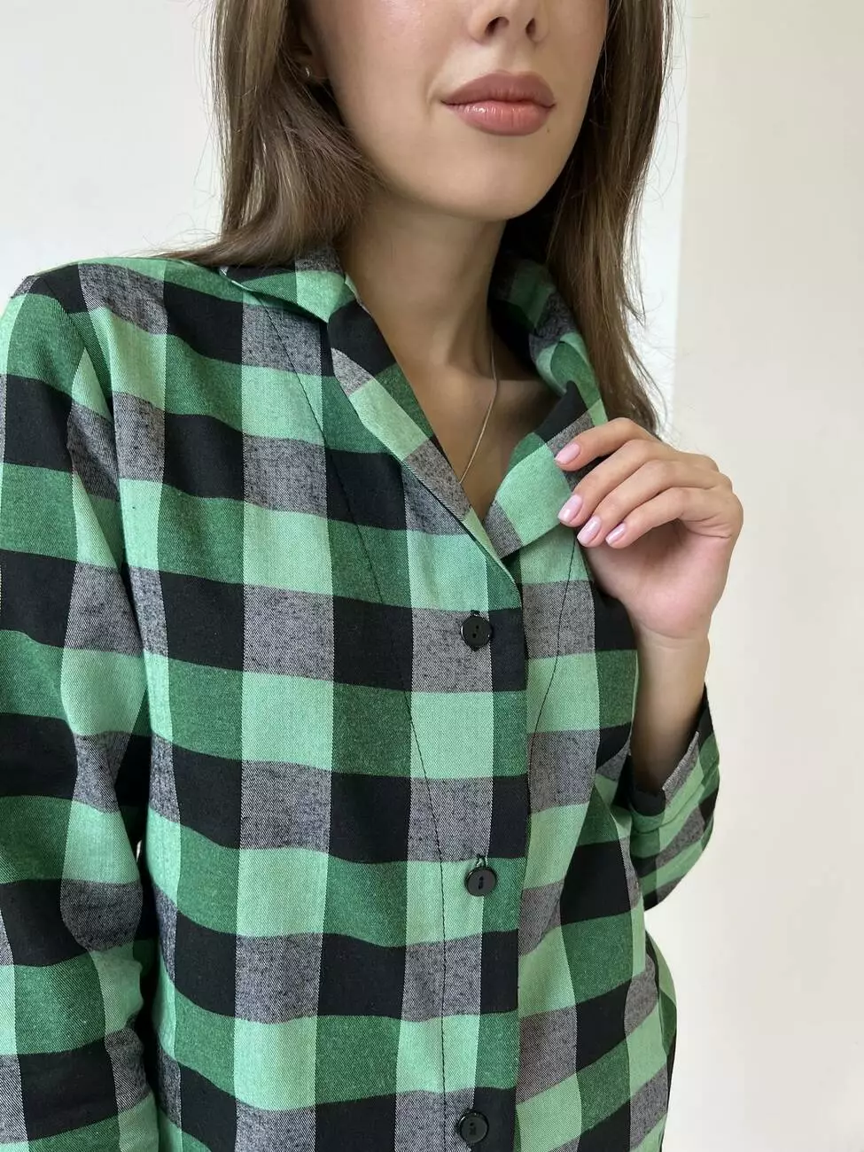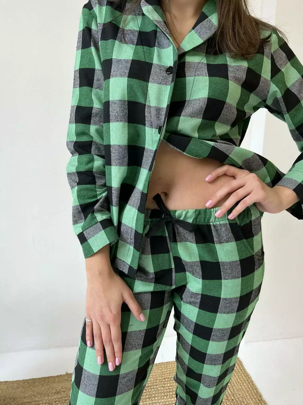 Домашня жіноча піжама COSY у клітинку зелено/чорна (сорочка+штани)