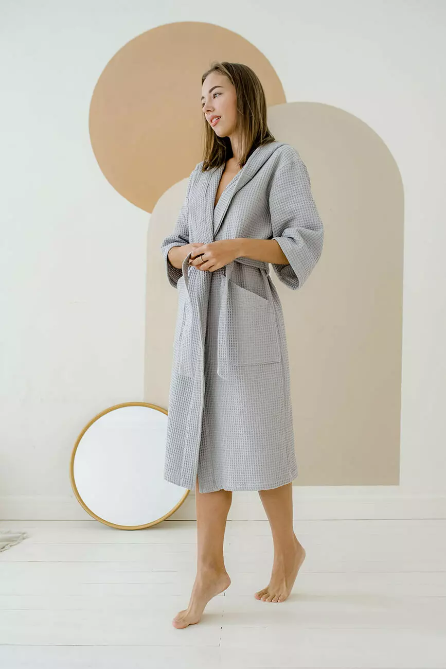 Жіночий Халат з капюшоном вафельний, сірий