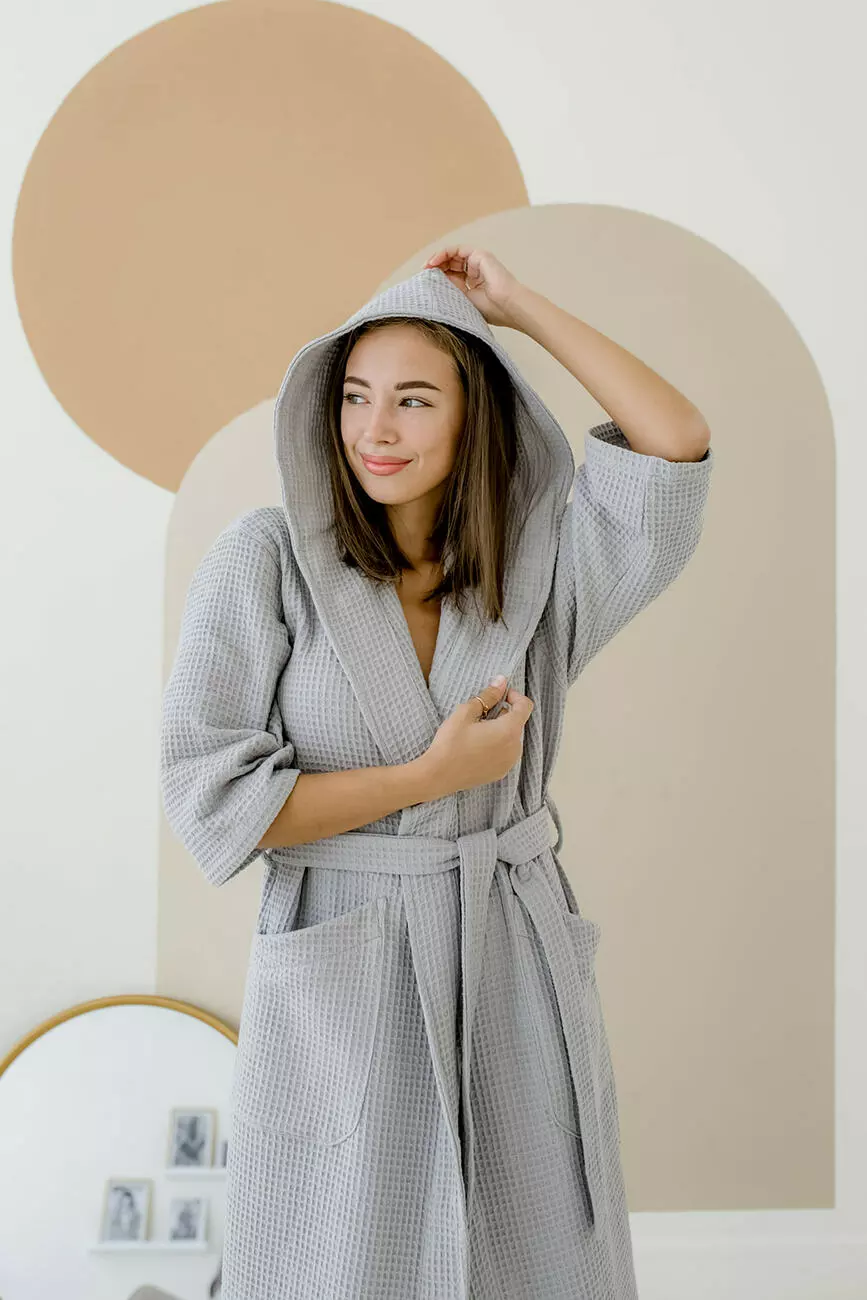 Вафельний халат з капюшоном, особливо зручний для тих, хто має довге волосся.