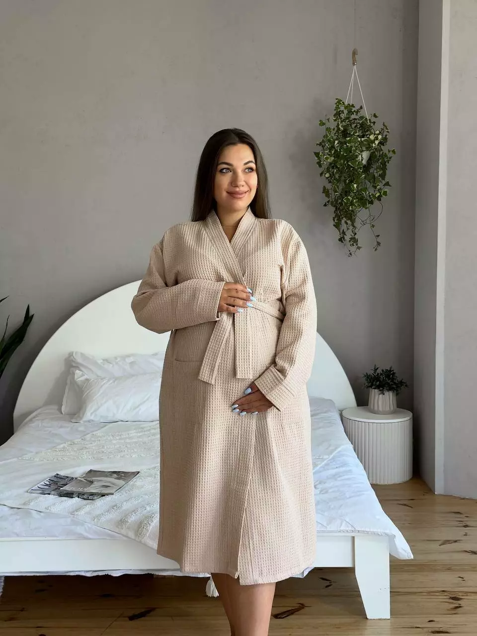 Халат жіночий вафельний для вагітних COSY довгий бежевий