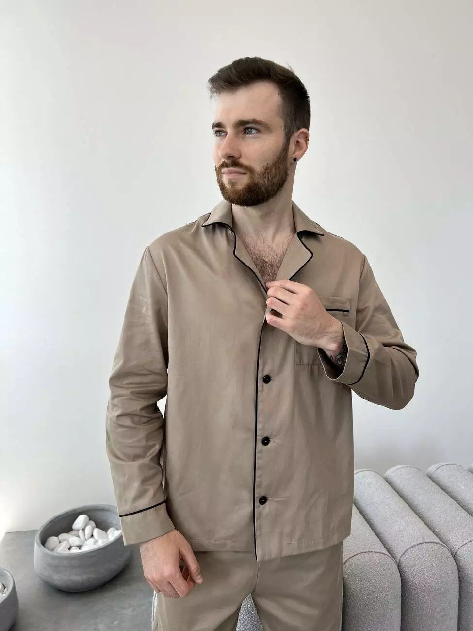 Піжама чоловіча COSY з cатину (штани+сорочка), Iced Coffee
