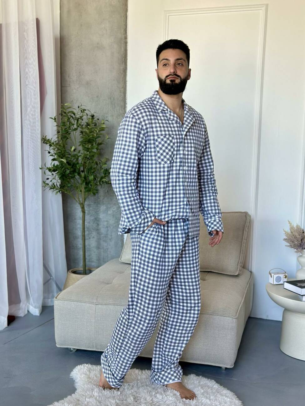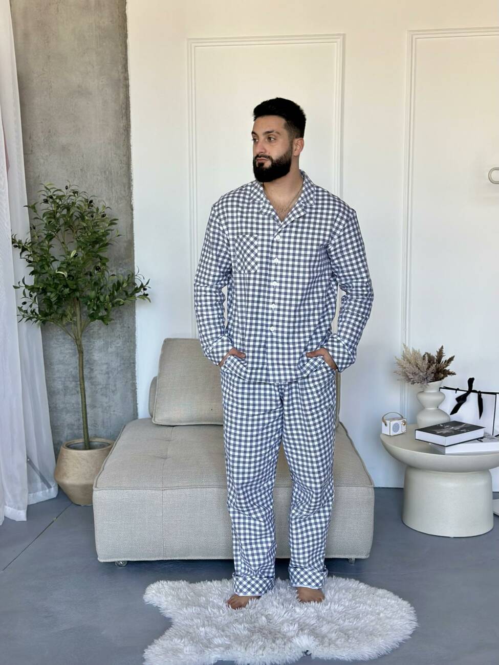 COSY Harmony — це чоловіча піжама, яка створена для справжнього відпочинку. Вона огортає теплом з першої хвилини й допомагає перемкнутися з активного дня у режим спокою та домашнього затишку. Стримана сіро-біла клітинка виглядає стильно й лаконічно — без зайвого, але з характером.