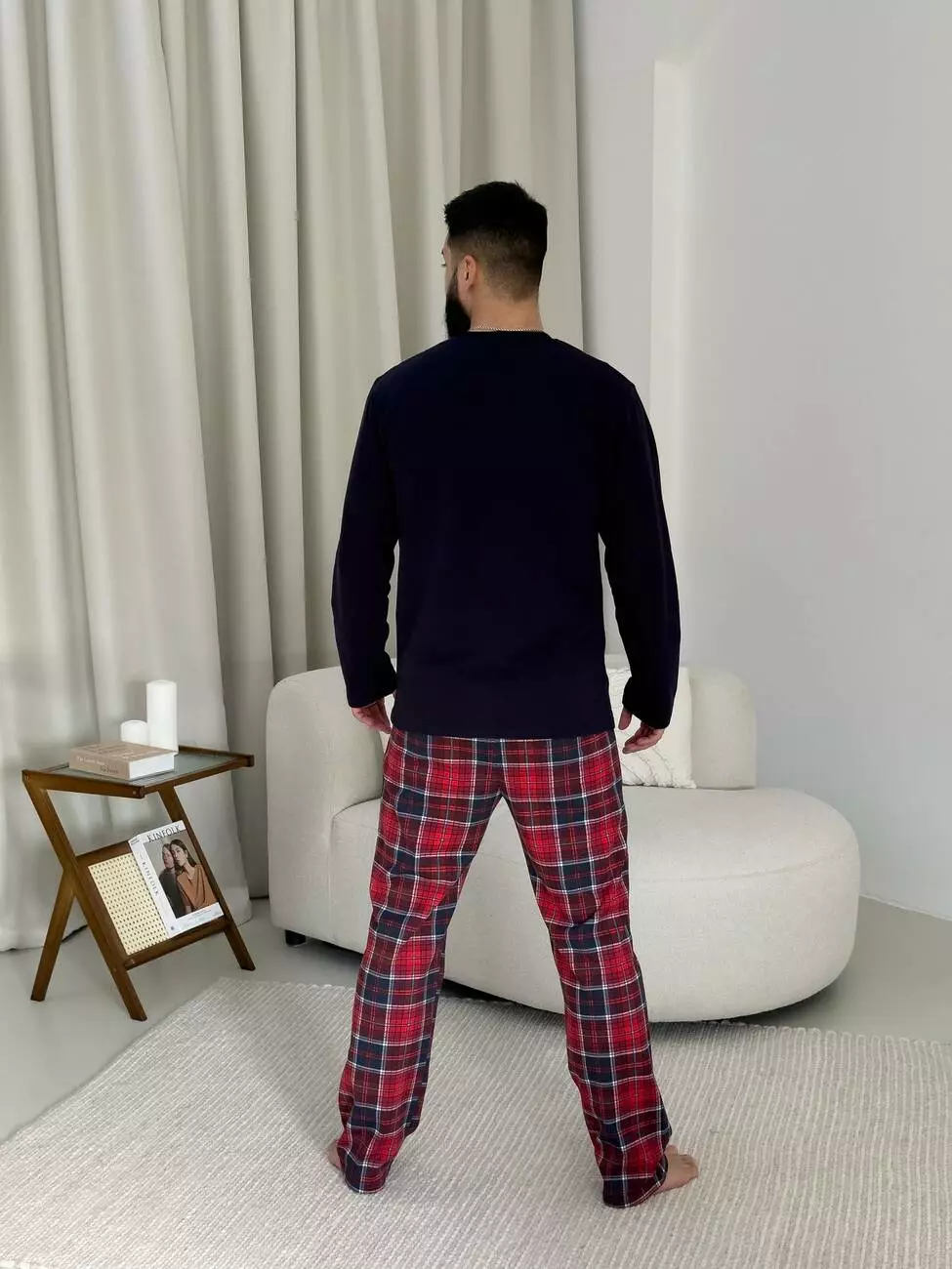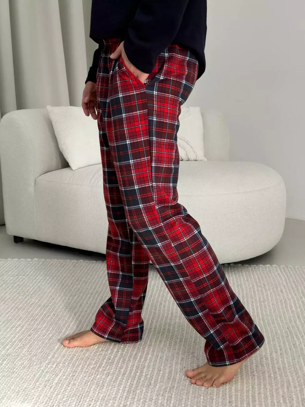 Піжама чоловіча тепла Just be COOL (штани+лонгслів) без прінта, клітина червоно-синя