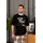 Футболка чорна з прінтом, штани в клітку беж./темно-сірий.