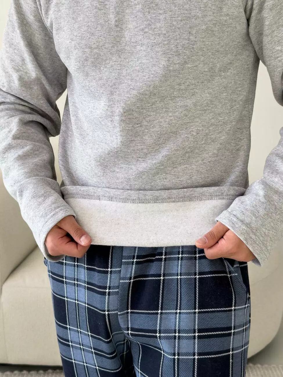 Штани: синьо-синя клітинка додає стилю та затишку.