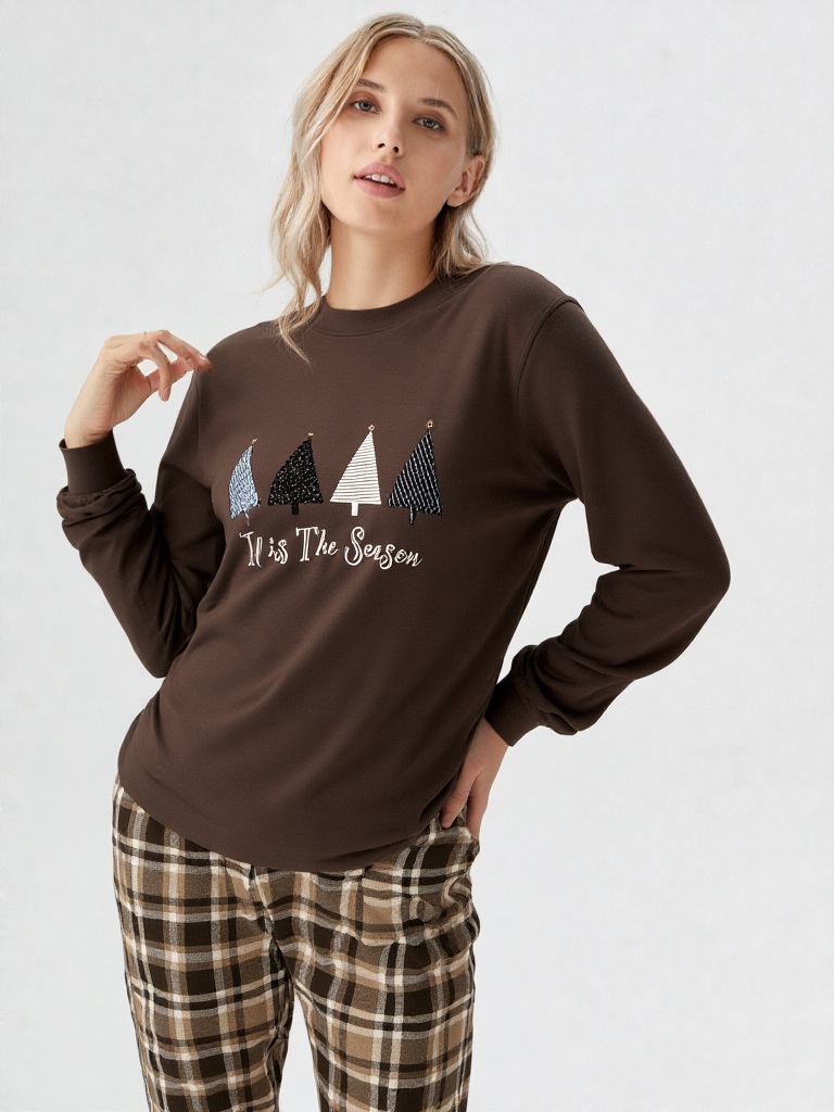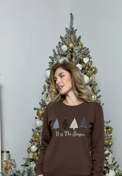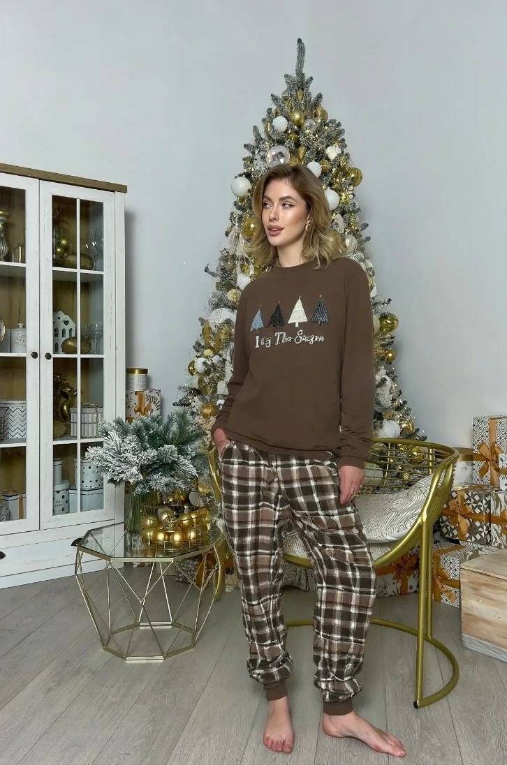 Піжама жіноча тепла “Святковий Затишок”, коричнева