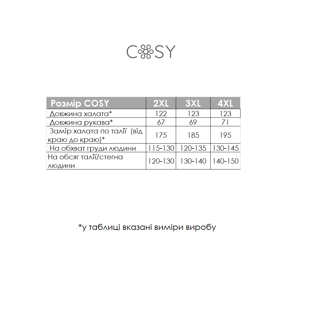 Це унісекс модель, яка чудово підійде для всіх, хто цінує комфорт і стиль незалежно від статі. Халат у розмірах 2XL, 3XL та 4XL, що забезпечує ідеальну посадку навіть для тих, хто шукає більше простору та свободи рухів.