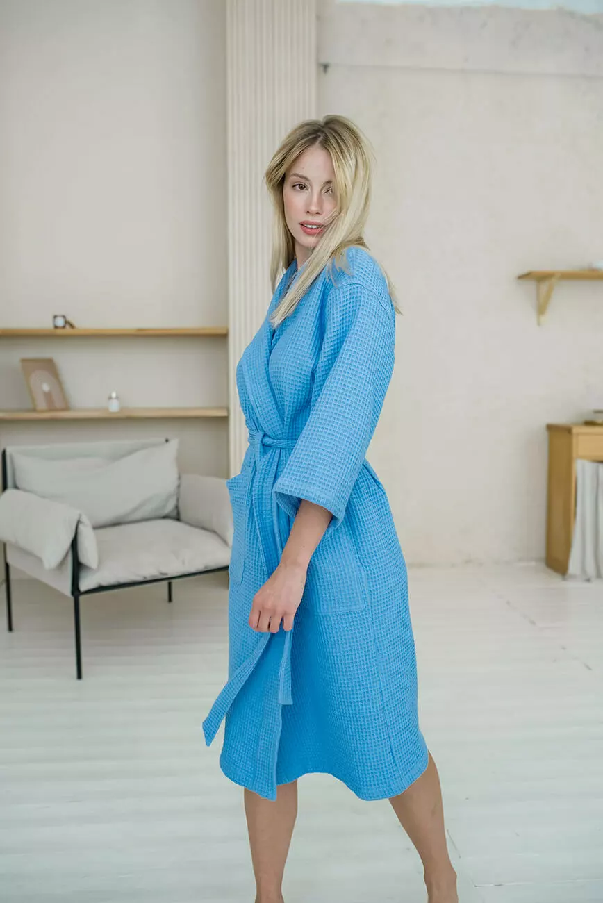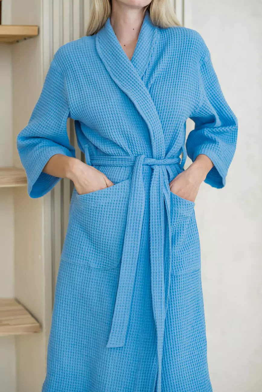 Жіночий Вафельний халат шаль, блакитний