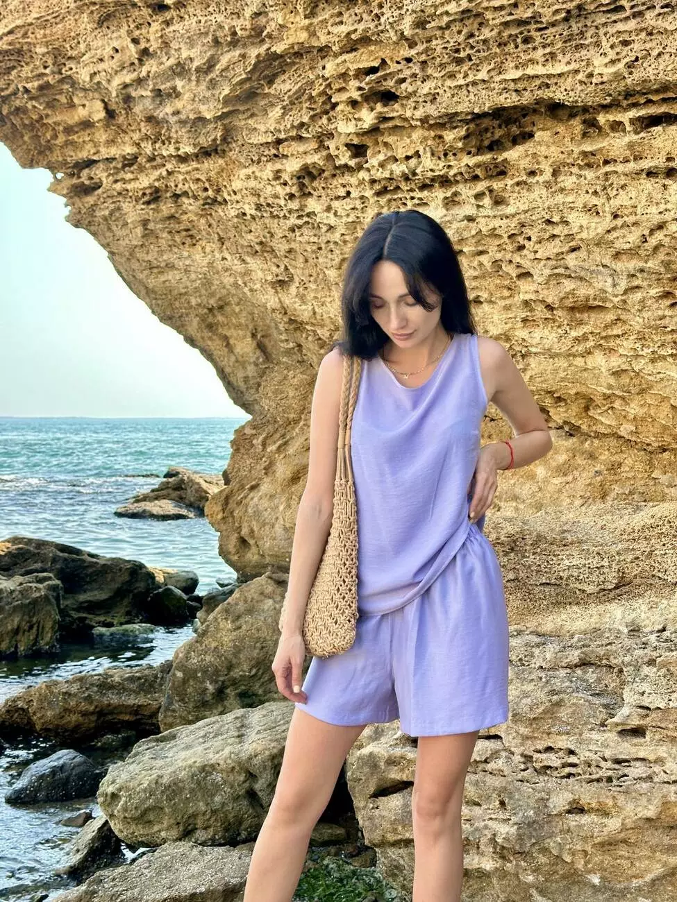 Вільний крій майки дарує свободу рухів та комфорт у спекотні дні. Лавандовий колір освіжає образ і додає йому м’якості. Ідеально поєднується з шортами, штанами чи спідницею — як у повсякденному, так і у більш романтичному літньому луці.