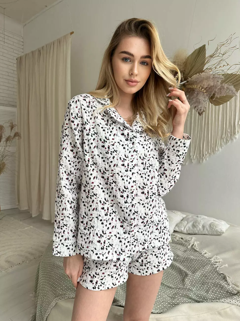 Жіноча Муслінова піжама COSY фарби на білому шорти + сорочка