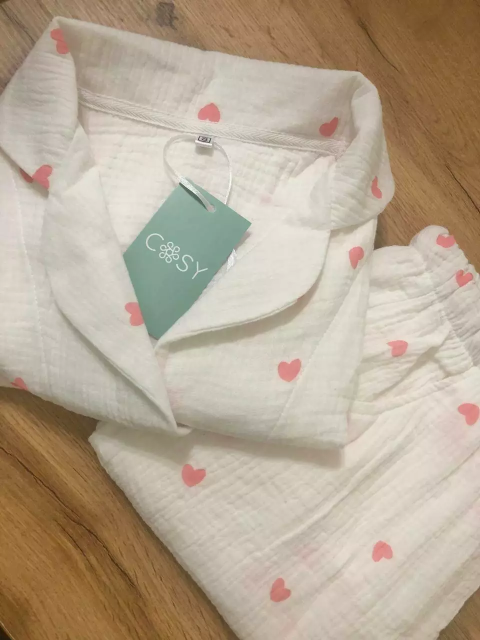 Жіноча Муслінова піжама COSY штани+сорочка, Серця рожеві на білому