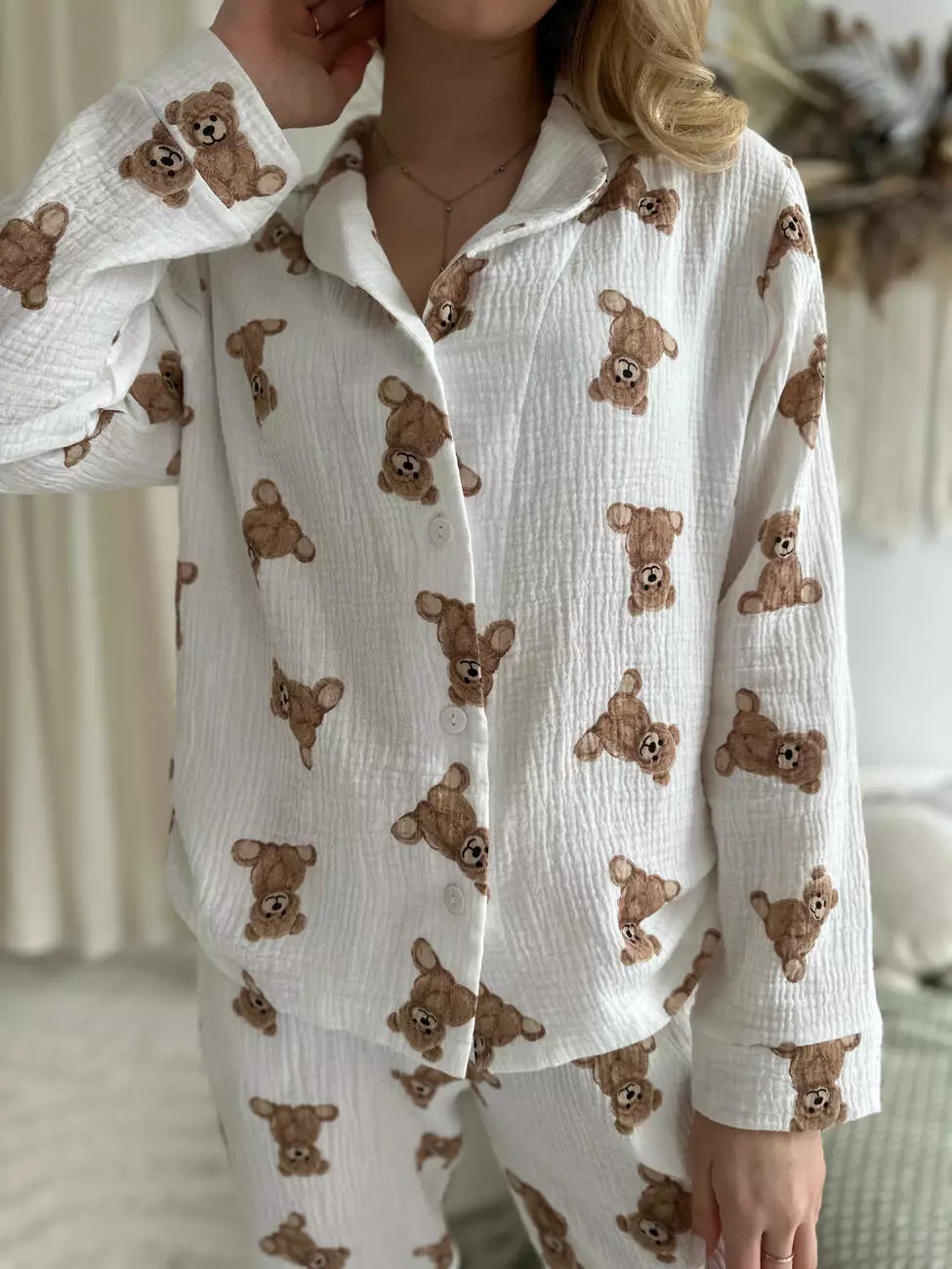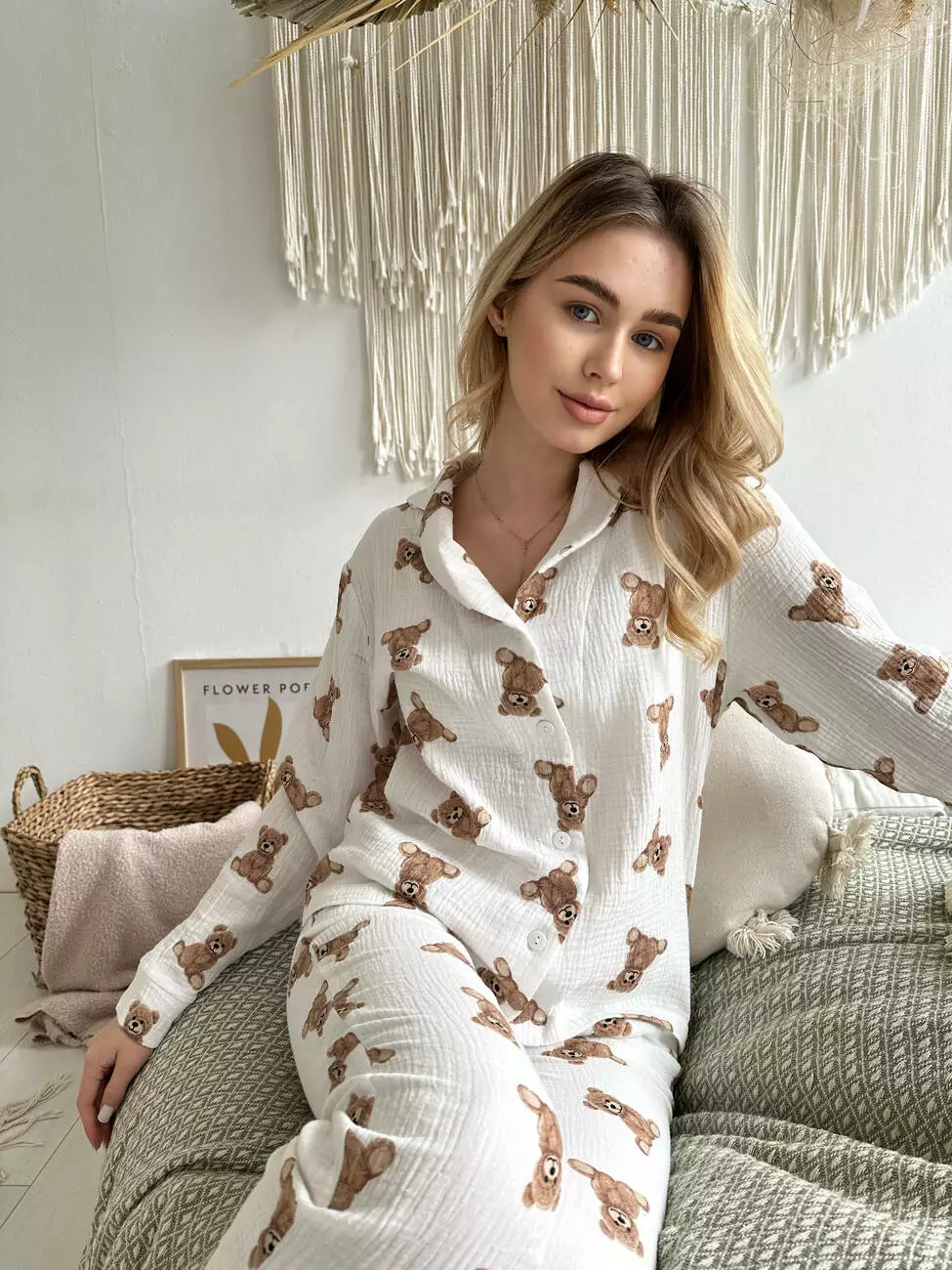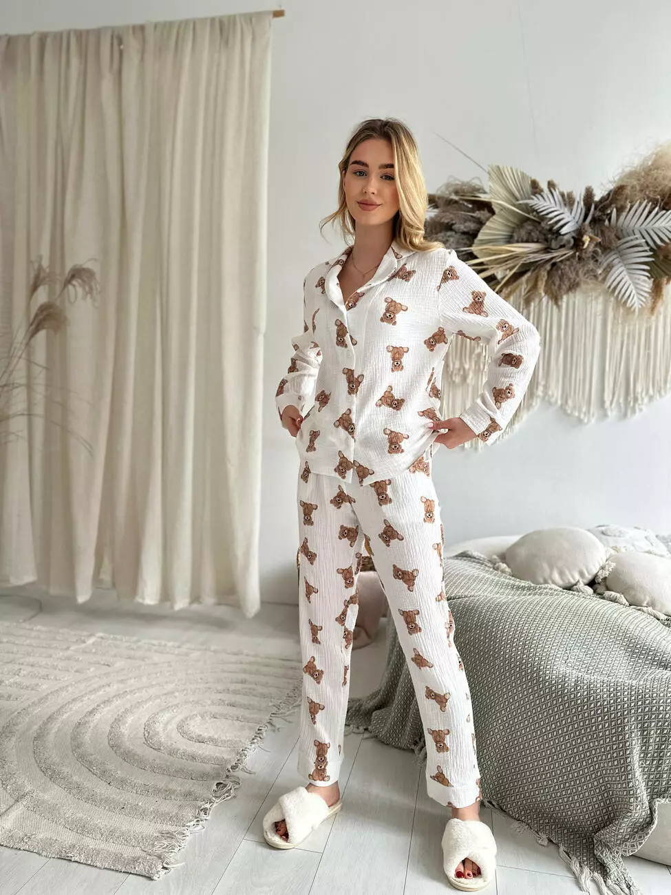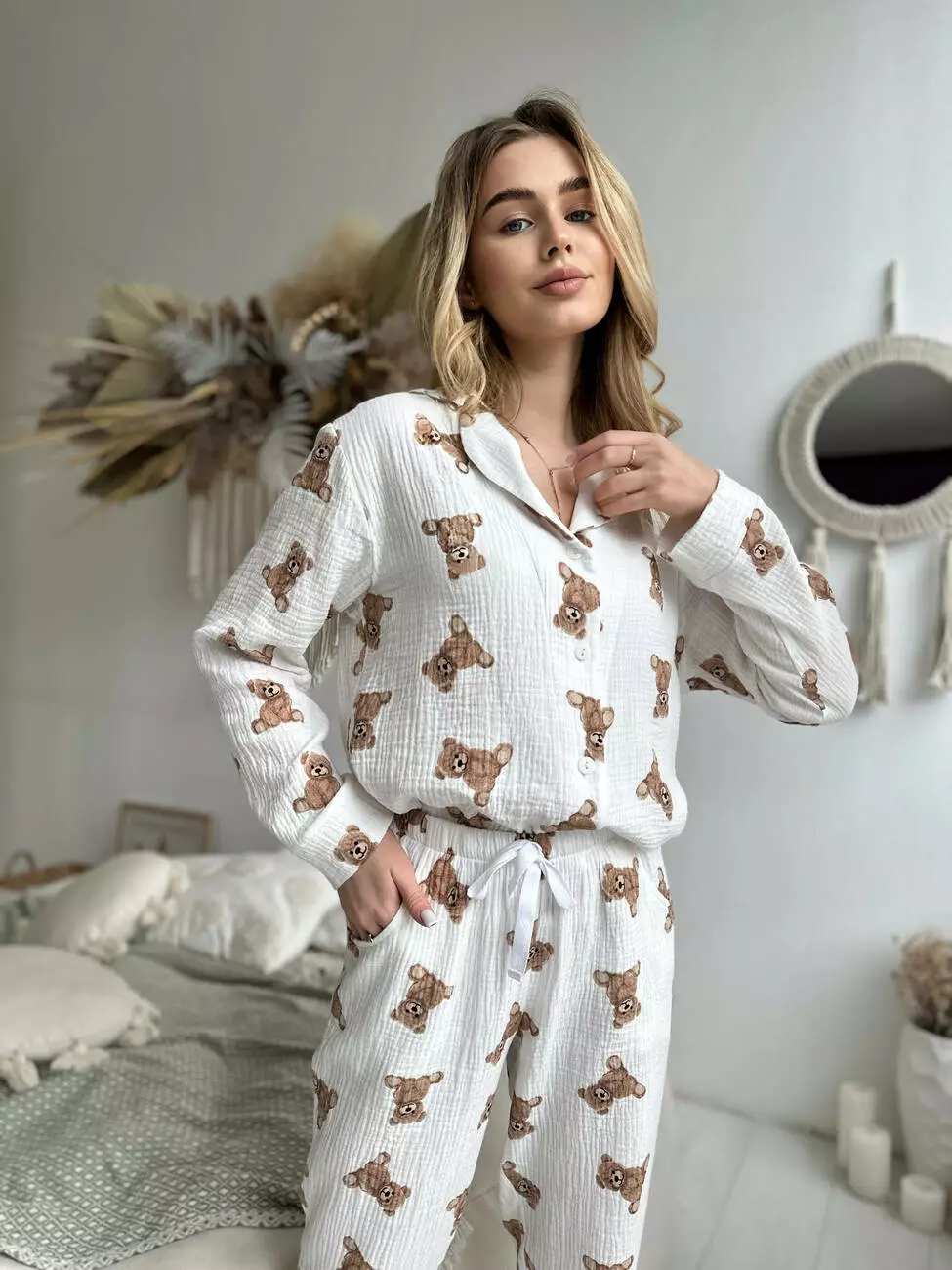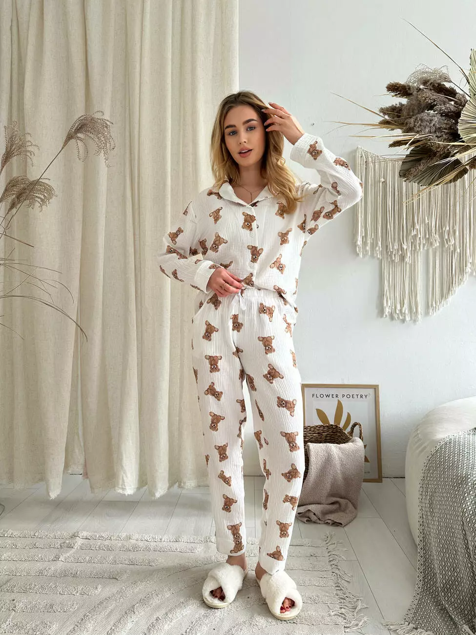 Жіноча Муслінова піжама COSY ведмедики Teddy штани+сорочка