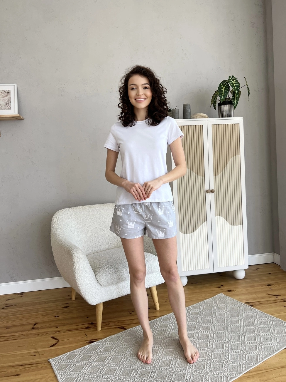 Жіноча Піжама COSY шорти із бязі+футболка Корона сірий