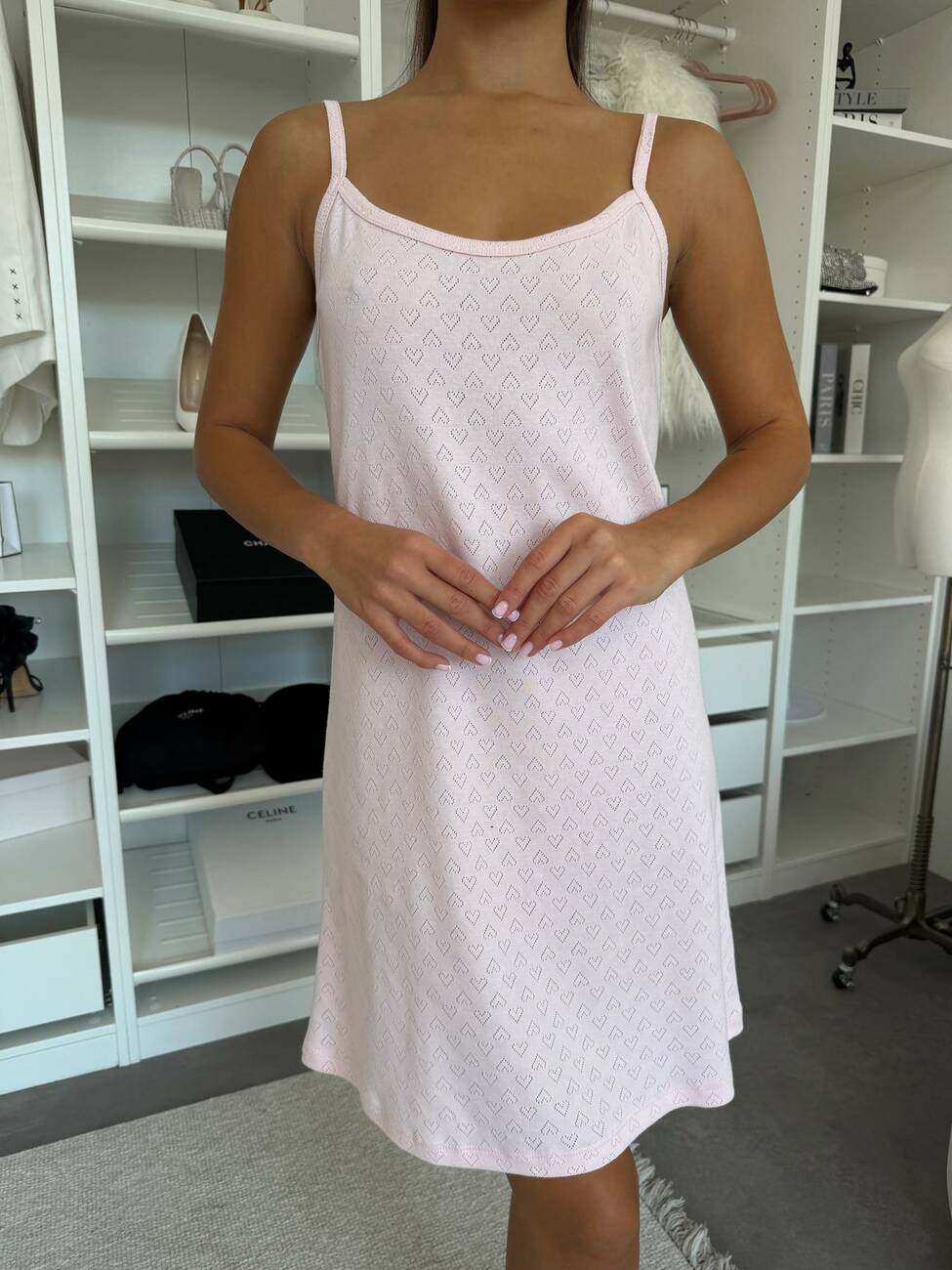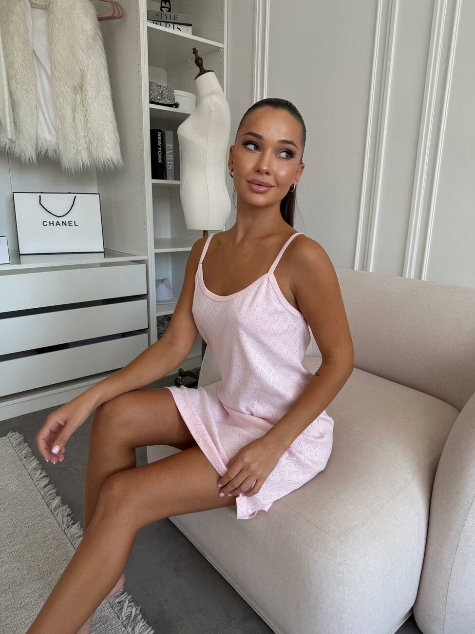 Нічна сорочка на бретелях — це ніжність і легкість у кожній деталі. Витончені тонкі бретелі підкреслюють лінії тіла, а вільний крій забезпечує комфортний сон та відпочинок. Ніжний відтінок у поєднанні з делікатним пробитим візерунком створює романтичний настрій, роблячи образ одночасно ніжним і привабливим. Матеріал — 100% бавовна (трансферна рібана): дихає, приємна до тіла й дарує відчуття домашнього затишку. Ця тканина поєднує м’якість, легкість та натуральність, ідеально підходить для сну та релаксу. Сорочка на бретелях — вибір для солодких снів і теплих вечорів у колі затишку. Довжина по бічному шву -66 см, разом з бретелями -83 см