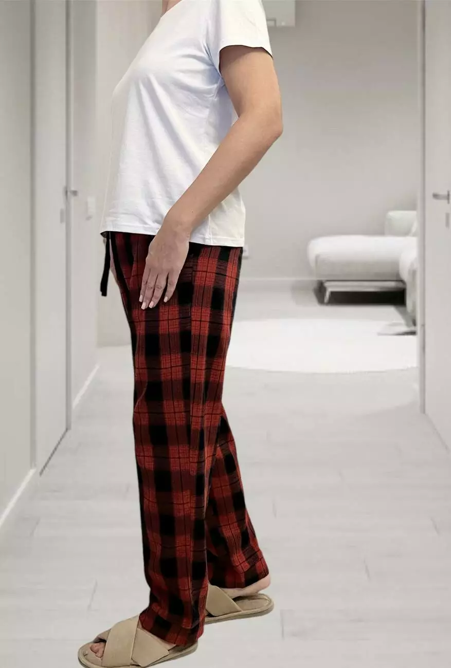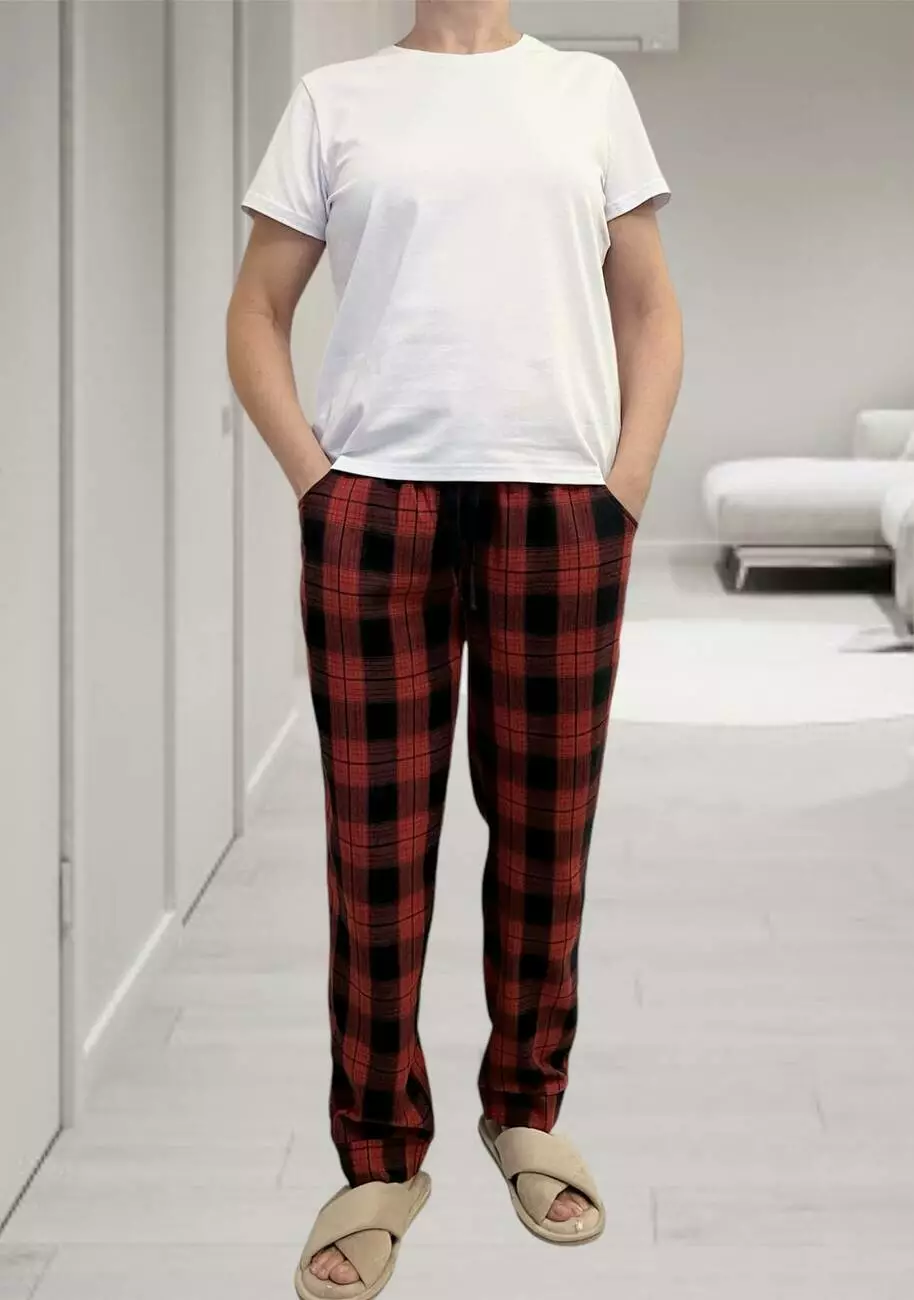 Жіночі штани COSY з фланелі "Глен", клітина червоно/темно-синя