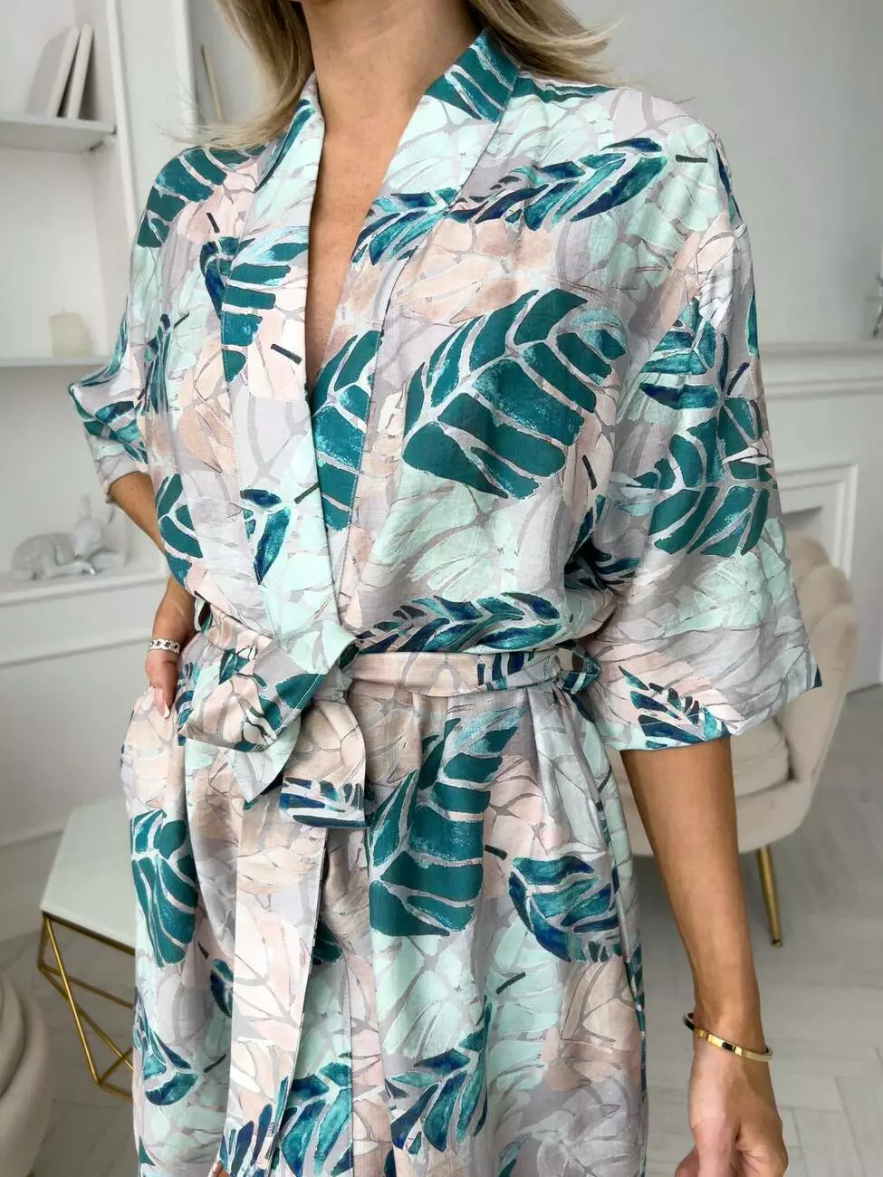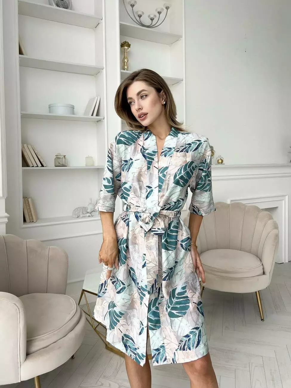 Легкий жіночий халат "Tropic" - ідеальний вибір на літо. Виготовлений з легкої та приємної тканини, цей халат не тільки забезпечить вам комфорт вдома, а й стане незамінним аксесуаром на відпочинку.