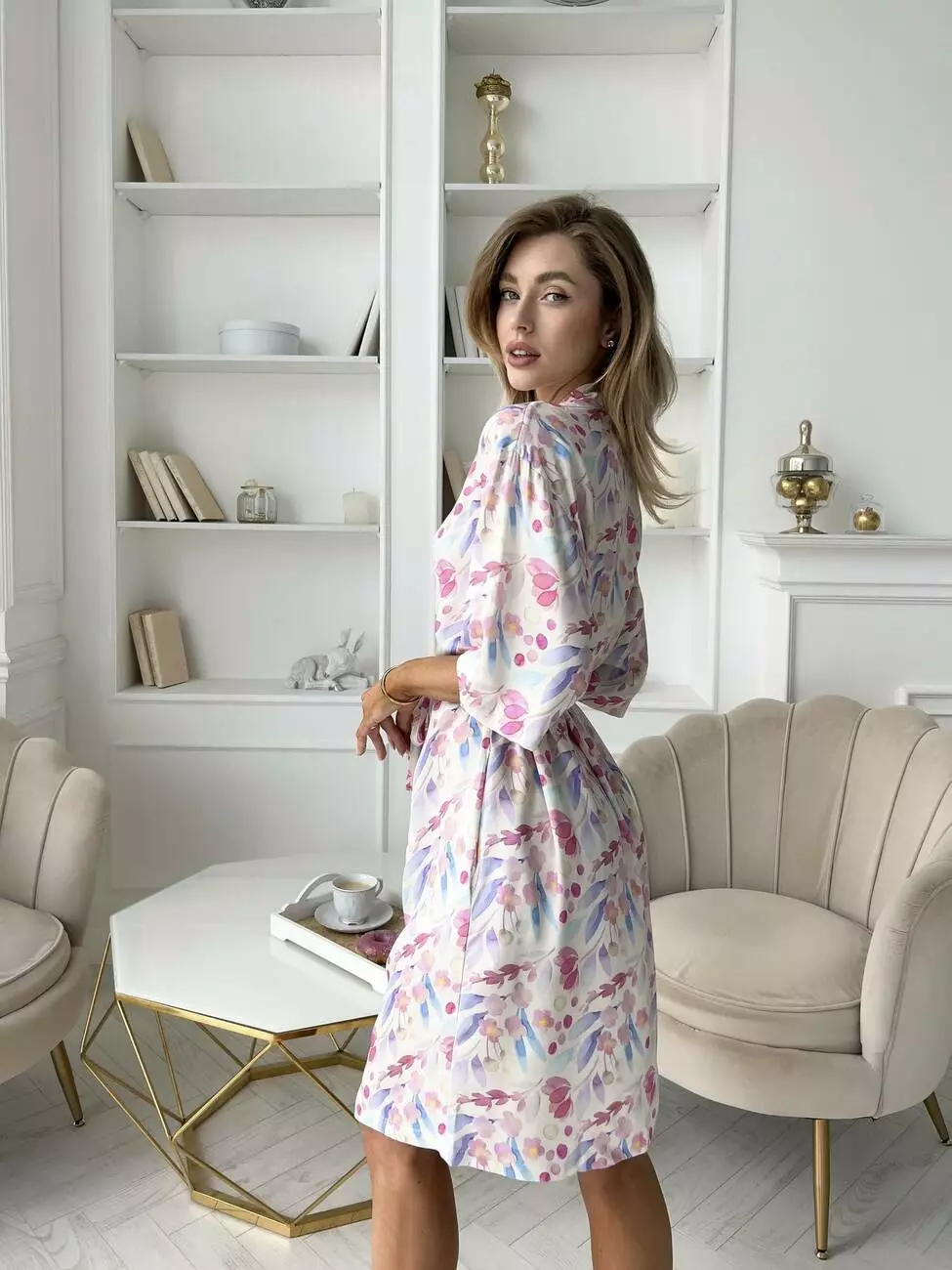 Колір: молочний з акварельними квітами