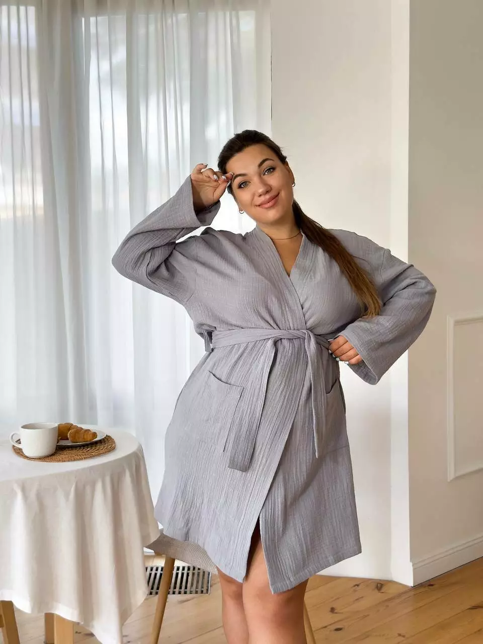 Жіночий халат для вагітних COSY Duna із фактурного мусліну сірий