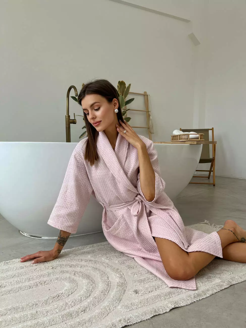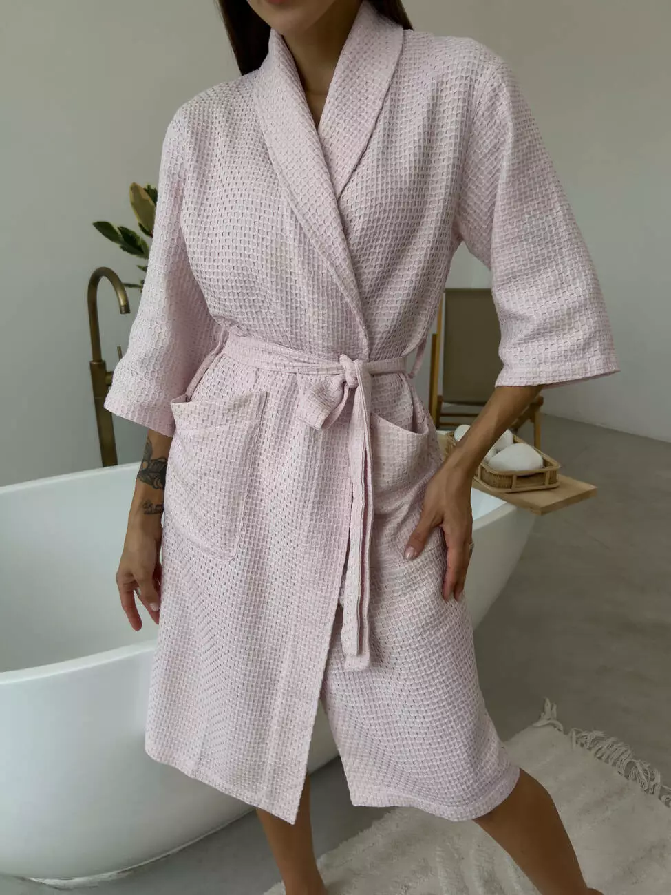 Халат з легкої та м'якої тканини піке з переплетенням ланцюжок.