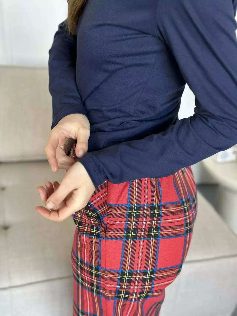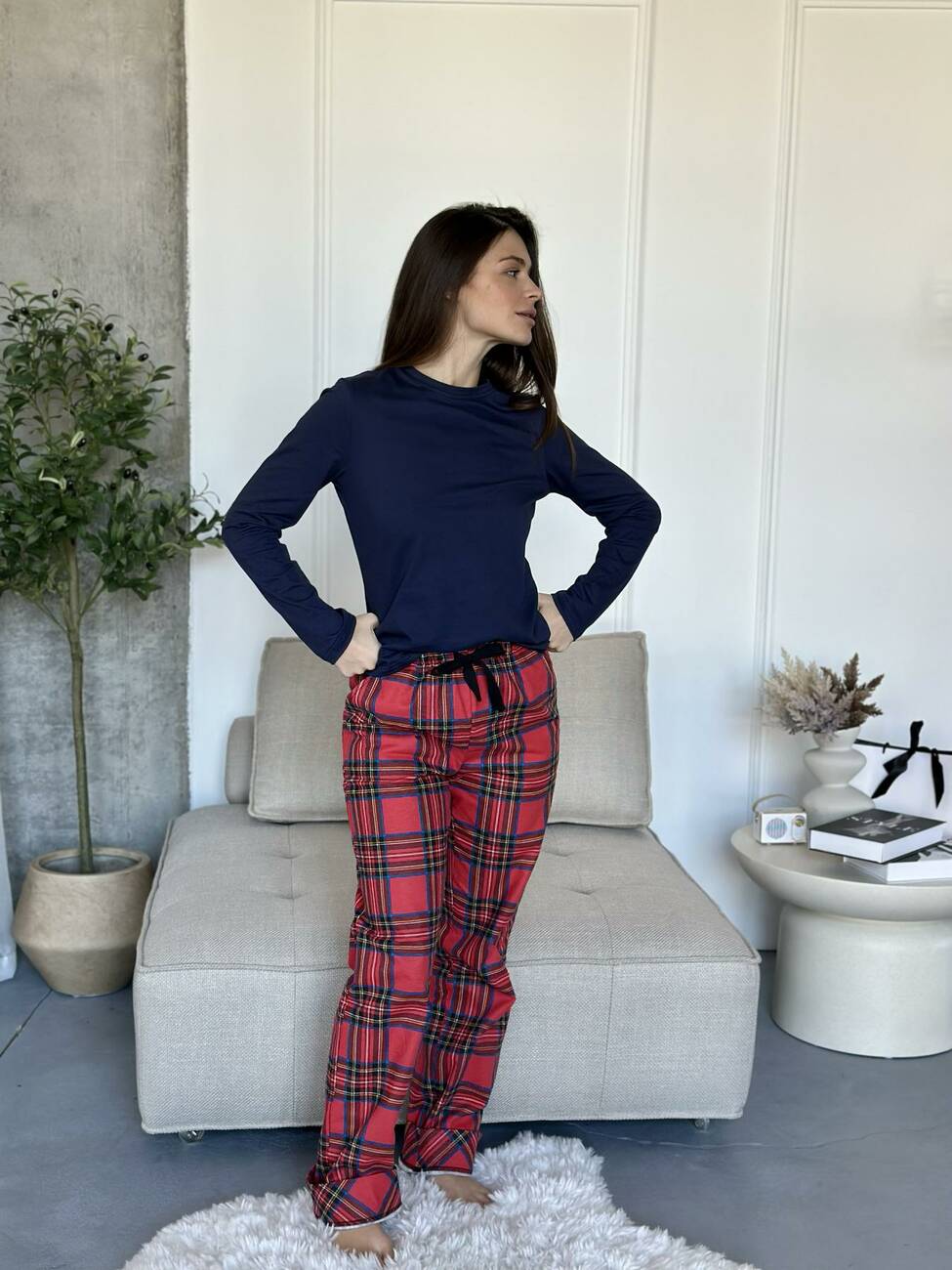 Жіночий комплект COSY Navera: штани + лонгслів, клітина червоно-синя