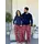 Лонгслів: Комфорт та ідеальна форма Стильний синій верх, що гармонійно доповнює принт штанів.