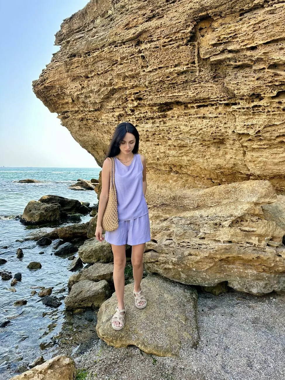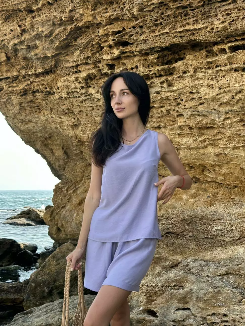 Легкий літній комплект з колекції LUMIA у ніжному лавандовому відтінку — ідеальний вибір для спекотних днів, відпочинку на морі, подорожей або прогулянок містом.