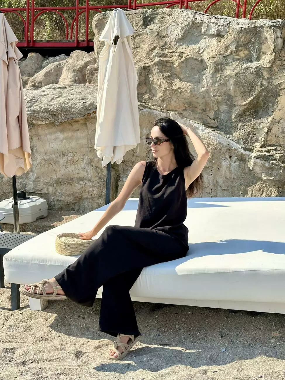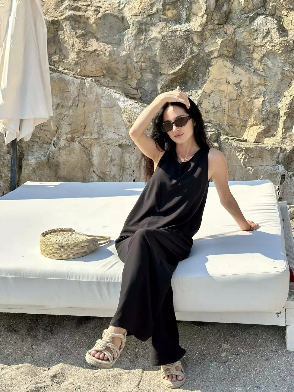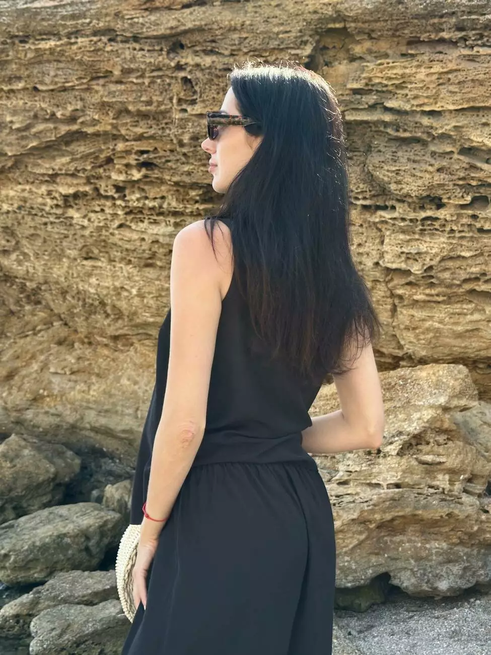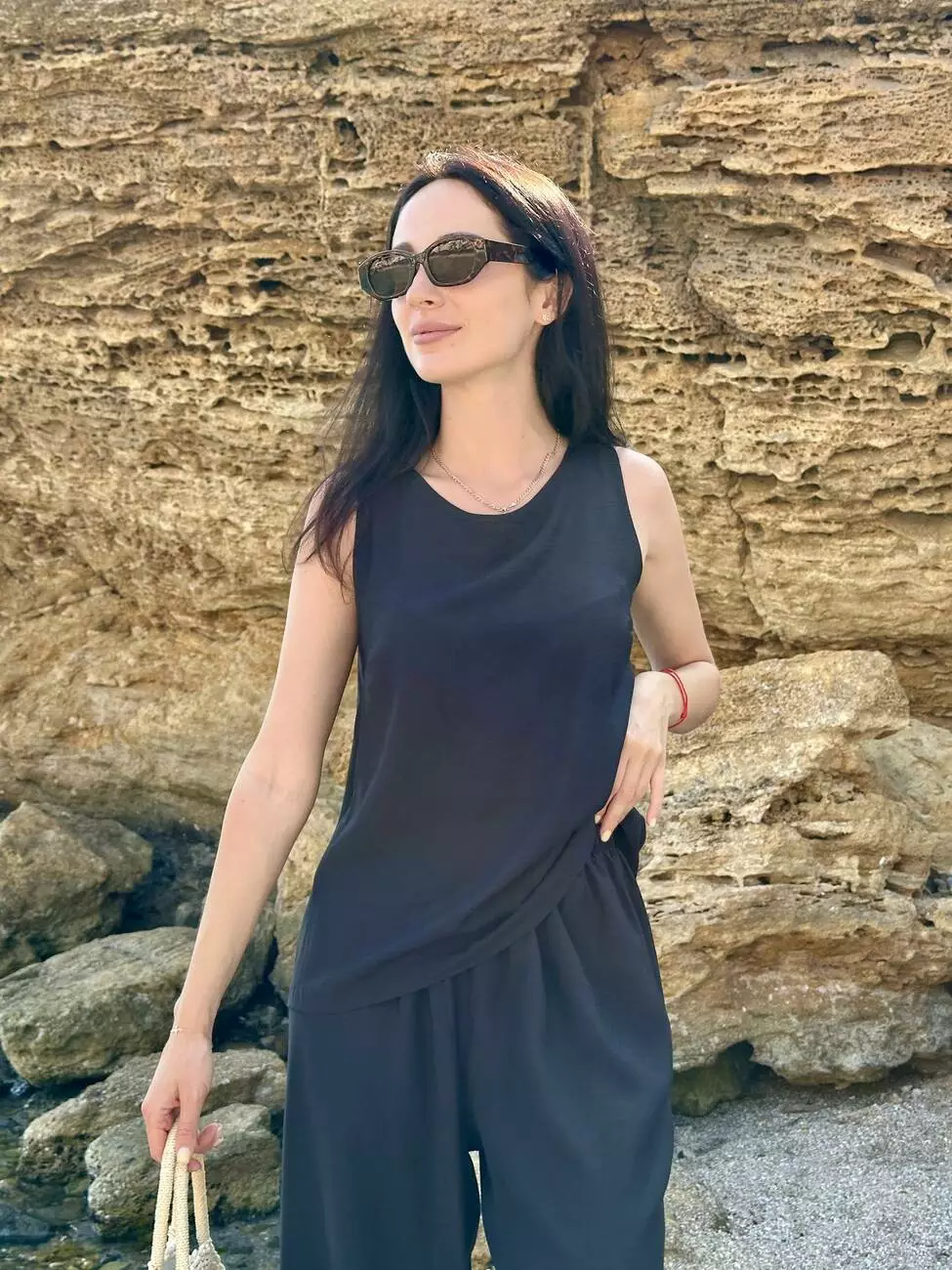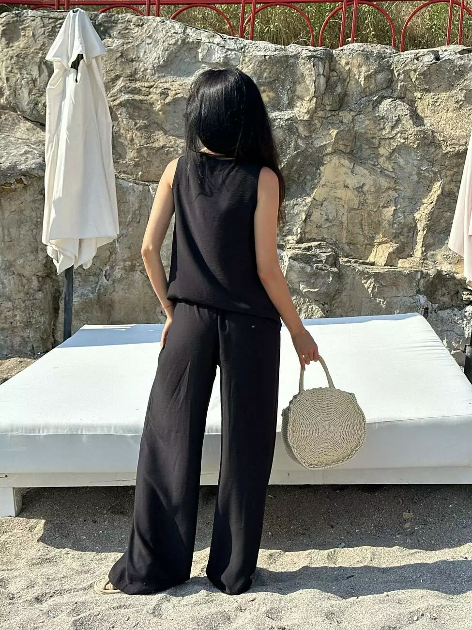 Чорний колір додає образу глибини та елегантності — такий комплект доречний і для прогулянки біля моря, і для вечірнього виходу, і для подорожі. Його легко поєднати з босоніжками, кедами або сандалями.