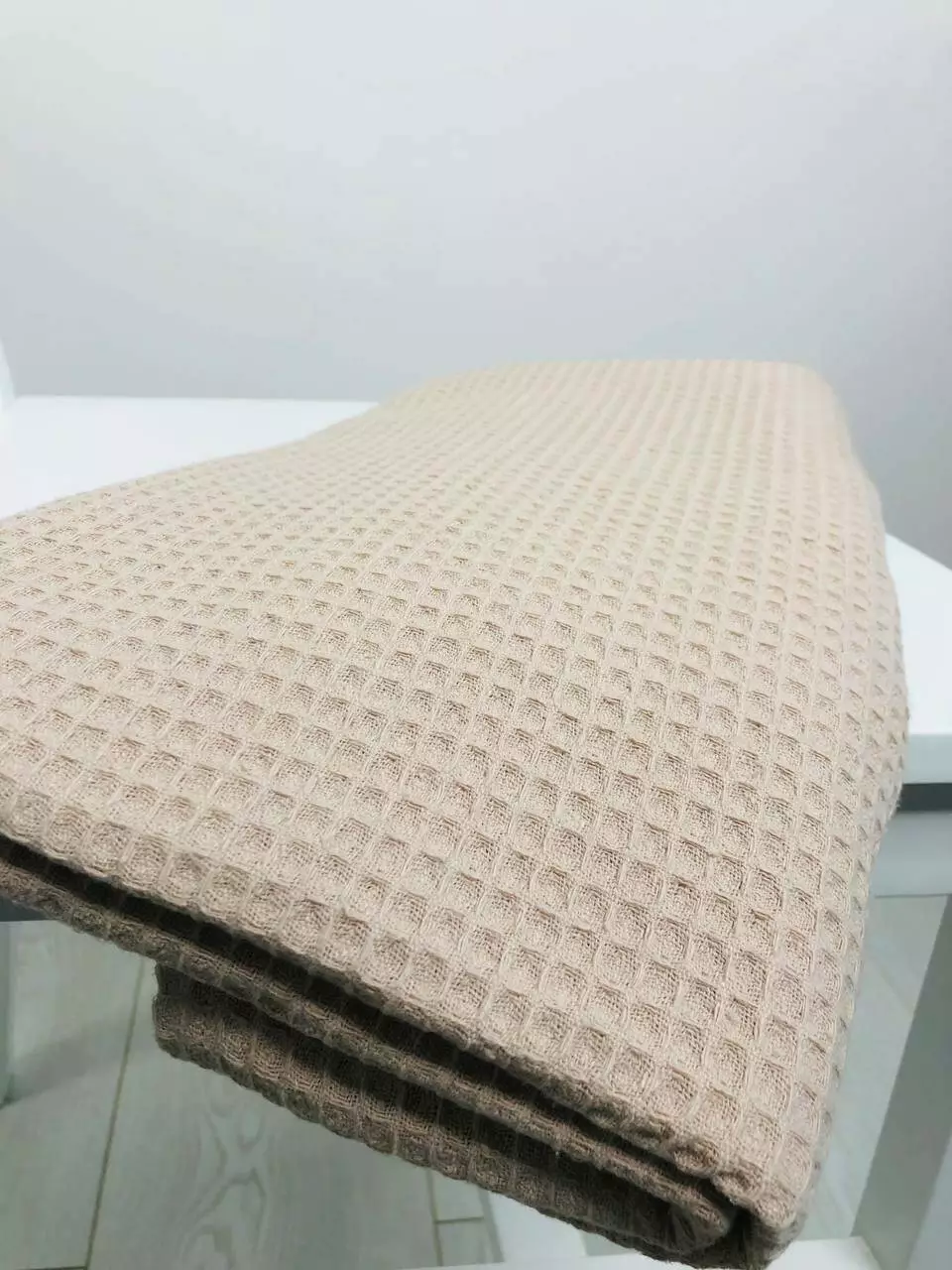 Насолоджуйтесь вишуканою естетикою цього банного рушника розміром 70*140 у благородному відтінку беж. Виготовлений із вафельної тканини, він не тільки ідеально вбирає вологу, але й подарує вам відмінний масаж, роблячи кожну ванну процедуру особливо приємною.