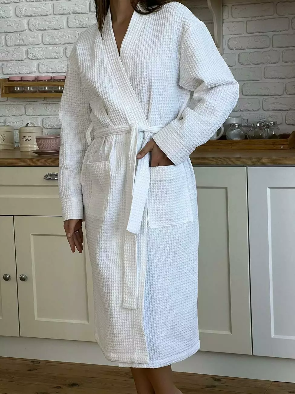 Жіночий білий вафельний халат створений для вашого комфорту та турботи про себе. Легкий і зручний вафельний халат ідеально підходить для дому, після душу чи ванни, а також стане незамінним супутником у бані, сауні або на відпочинку в спа. Вафельна тканина не лише дарує приємні відчуття на шкірі, а й швидко поглинає вологу. Завдяки довгому крою халат красиво огортає фігуру, підкреслюючи жіночність і водночас забезпечуючи максимальний комфорт у щоденному використанні. Переваги для вас: - 100% натуральна бавовна (Туреччина) – м’яка та дихаюча; - чудово вбирає вологу; - універсальний варіант – для дому, лазні, сауни чи спа; - класичний білий колір додає відчуття свіжості й легкості; - практичний і стильний довгий фасон. Характеристики: Колір: білий Тканина: 100% бавовна (Туреччина) Щільність: 220 г/м² Розміри: S–M, L–XL Усадка після прання: до 6% Такий халат стане вашим улюбленим аксесуаром для відпочинку та домашніх ритуалів краси. Рекомендації щодо догляду: 1. Прати у холодній воді (при температурі не вище 40°С), віджимання тільки на малих обертах 400. Не використовувати відбілювачі. 2. Природне сушіння. Рекомендується трохи розтягнути Виріб під час сушіння. 3. Прасувати при високих температурах до 200°С (режим бавовна) з паром. Після прання вафельні клітини збираються, але після висихання та прасування вони розходяться.