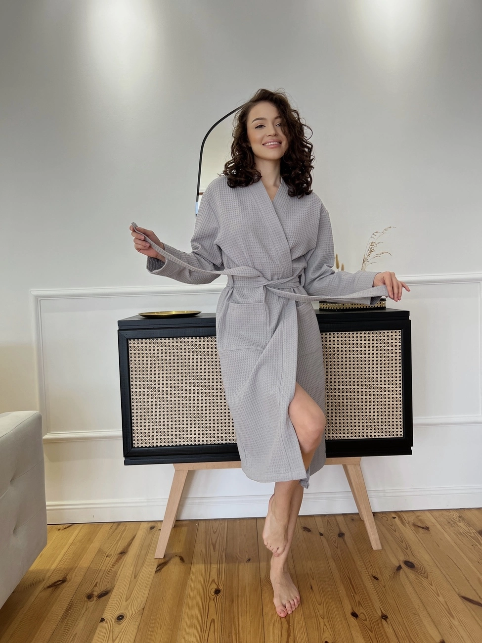 Завдяки своїй м'якості та унікальній здатності поглинати вологу вафельна тканина є однією з найпопулярніших серед бавовняних тканин. Зручний довгий халат незамінна річ у вашому гардеробі